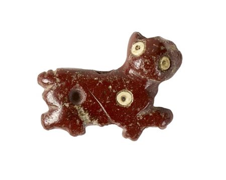 Pendente modellato come un bovino stilizzato, dettagli resi ad incisione, occhi in calcare bianco