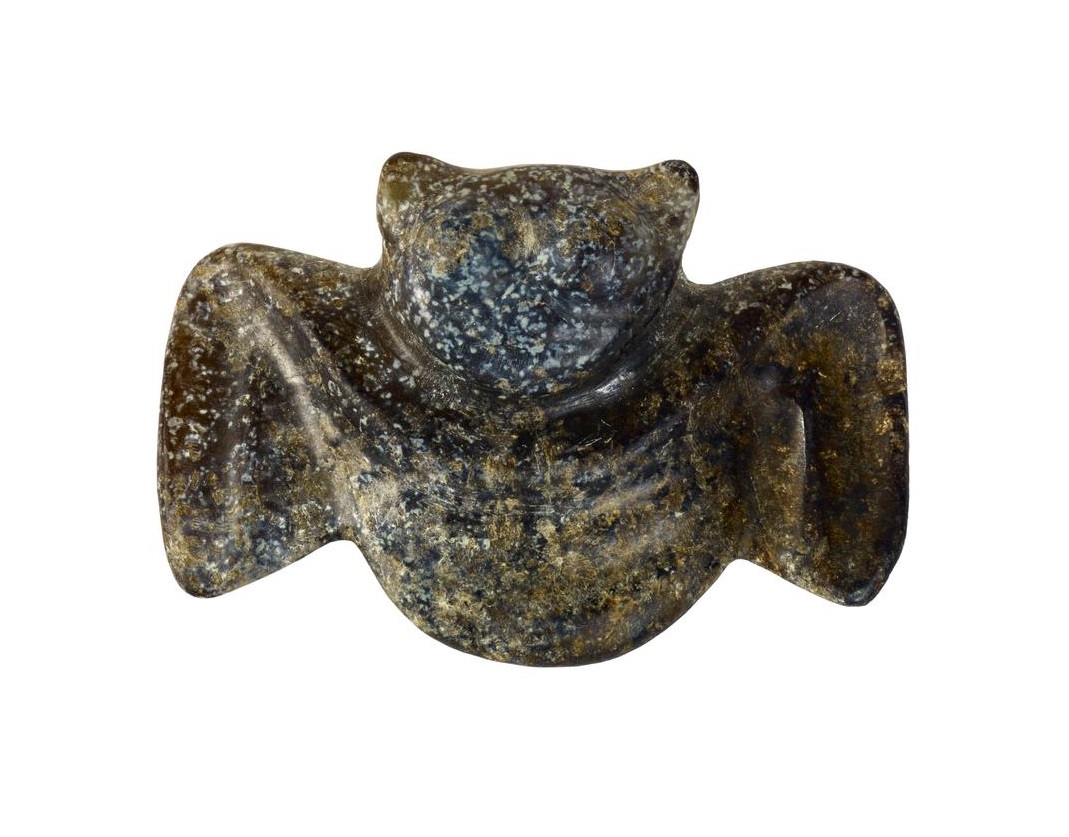 Pendente a forma di mitico uccello ad ali spiegate, forse un pipistrello stilizzato; sono presenti i tipici fori a "naso di bue" sul retro