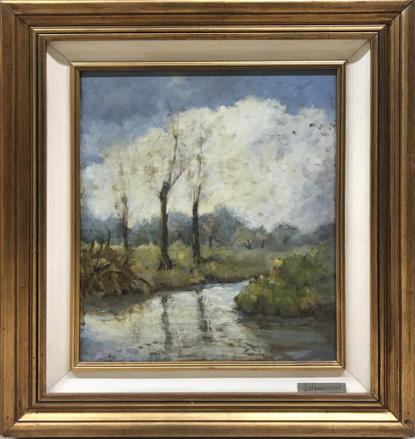 Giovanni Squarcina PAESAGGIO FLUVIALE olio su faesite, cm 50x40 firma