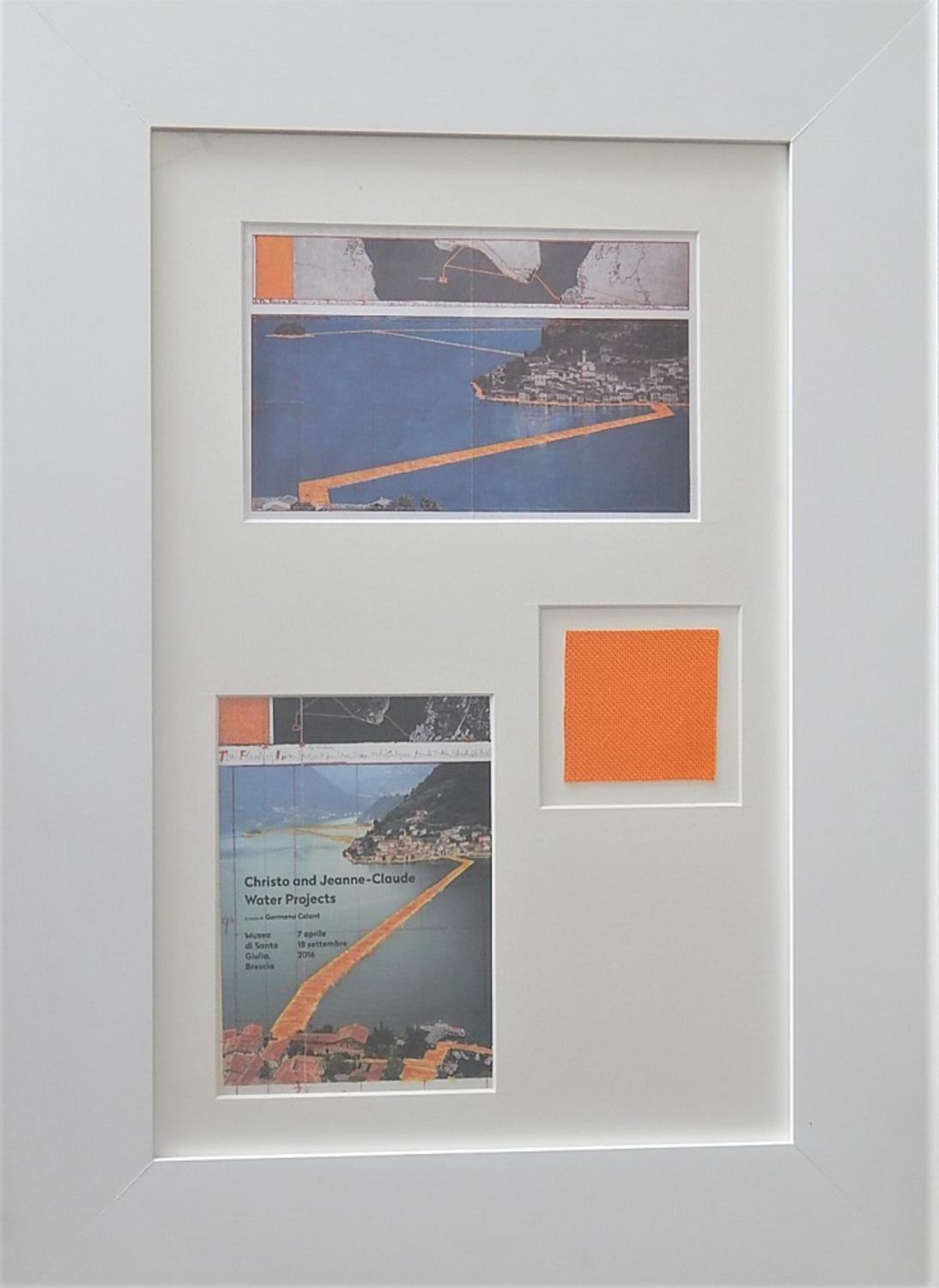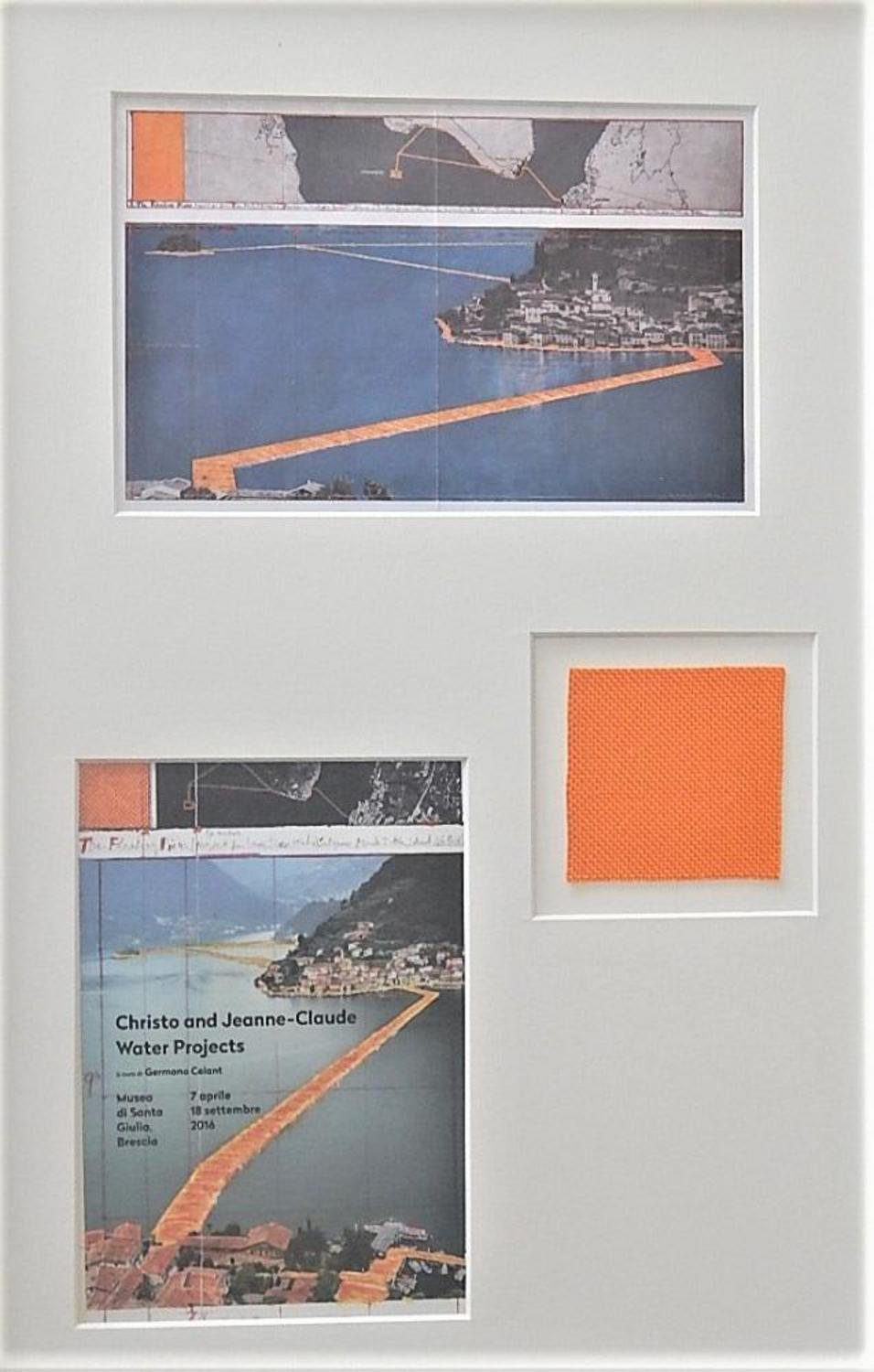 Lotto 206 | Christo THE FLOATING PIERS collage di tessuto originale e cartoline, cm 70x30...