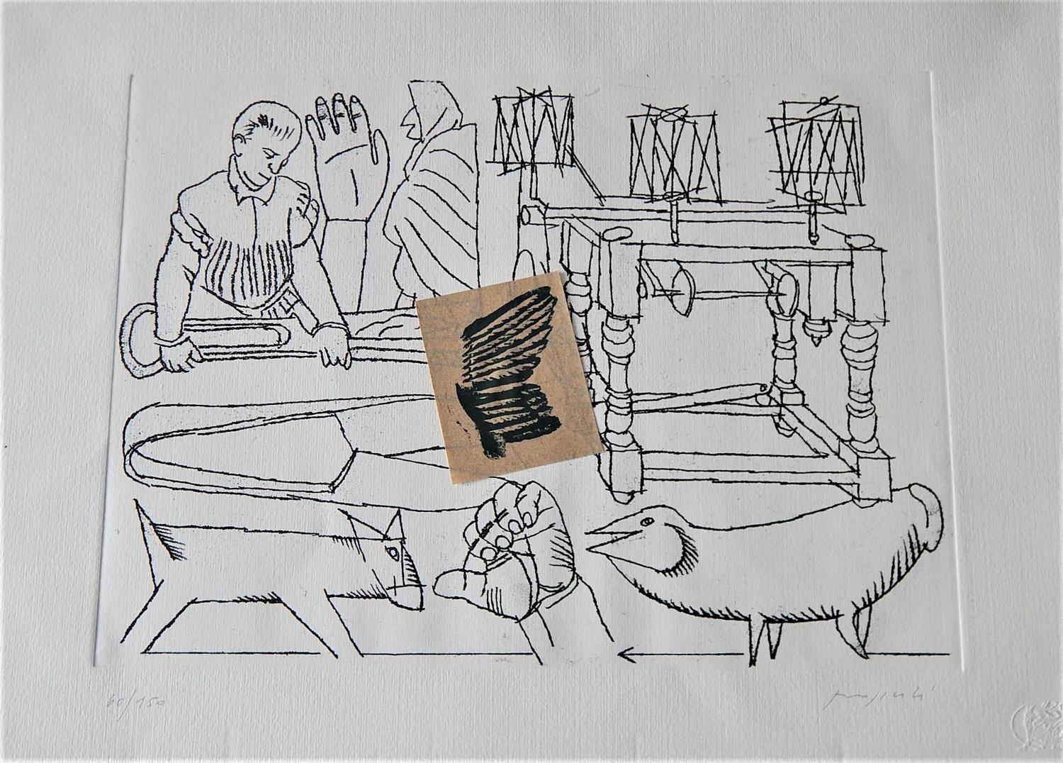 Lotto 207 | Concetto Pozzati SENZA TITOLO incisione e collage su carta, cm 25x34,5 su...