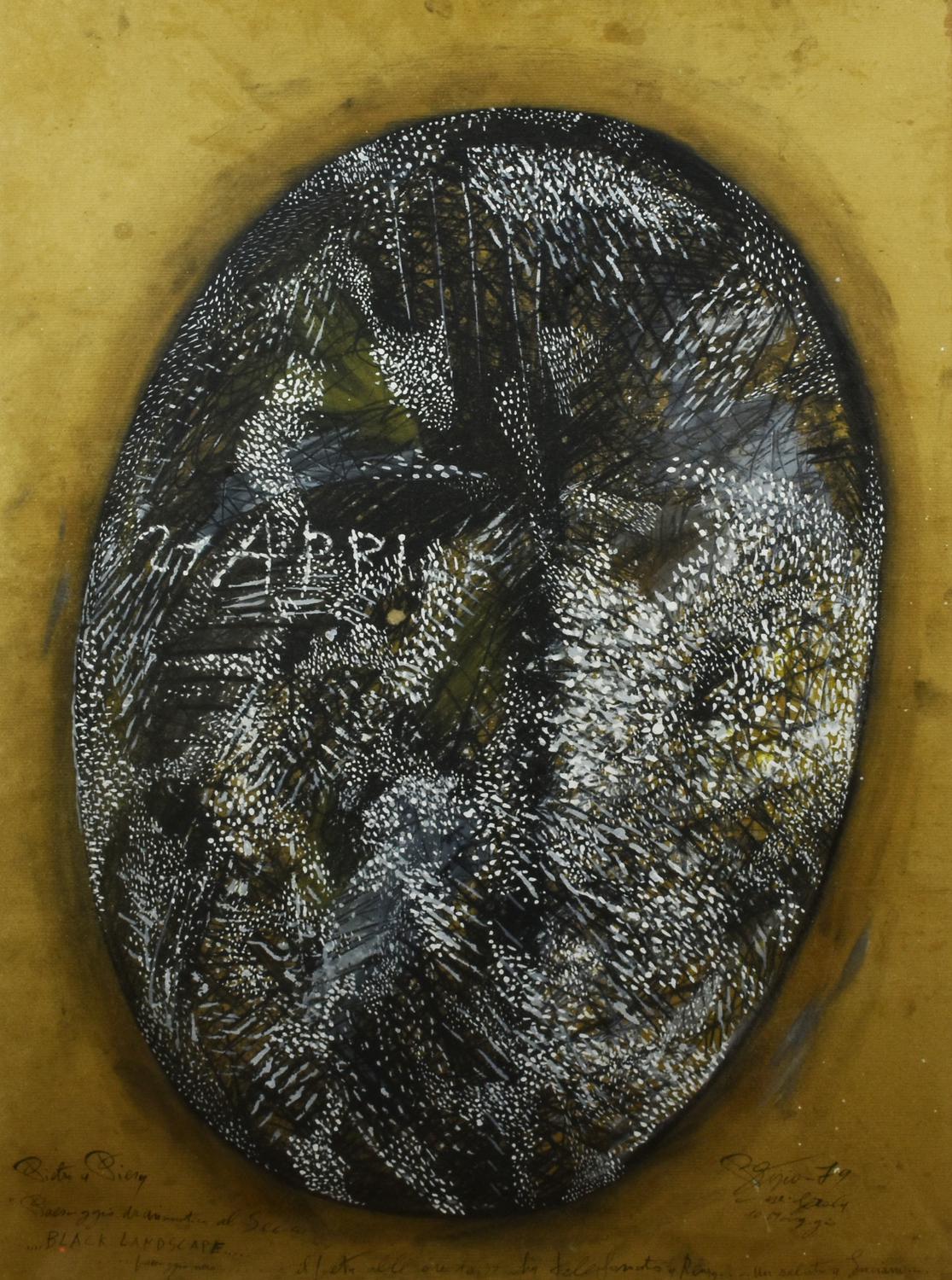 Lotto 228 | Pietro Bisio BLACK LANDSCAPE tecnica mista su carta applicata su tavola, cm...