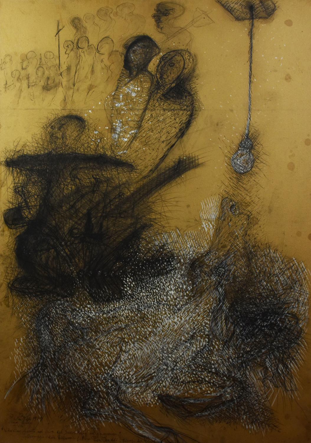 Lotto 229 | Pietro Bisio VITELLINO FERITO NEL CUORE... tecnica mista su carta applicata...