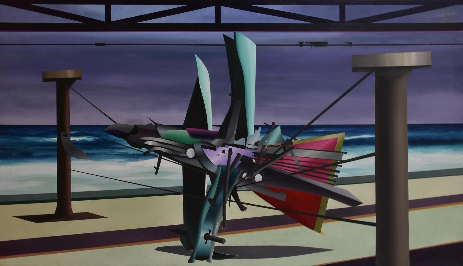 Giuseppe Caccamo MODELLO 74 IN FASE DI COLLAUDO olio su tela, cm 80x150 sul...