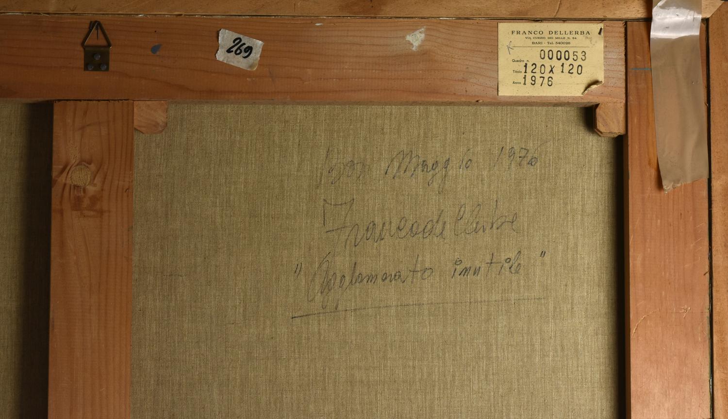 Franco Dellerba AGGLOMERATO INUTILE acrilico su tela, cm 120x120 sul retro:...