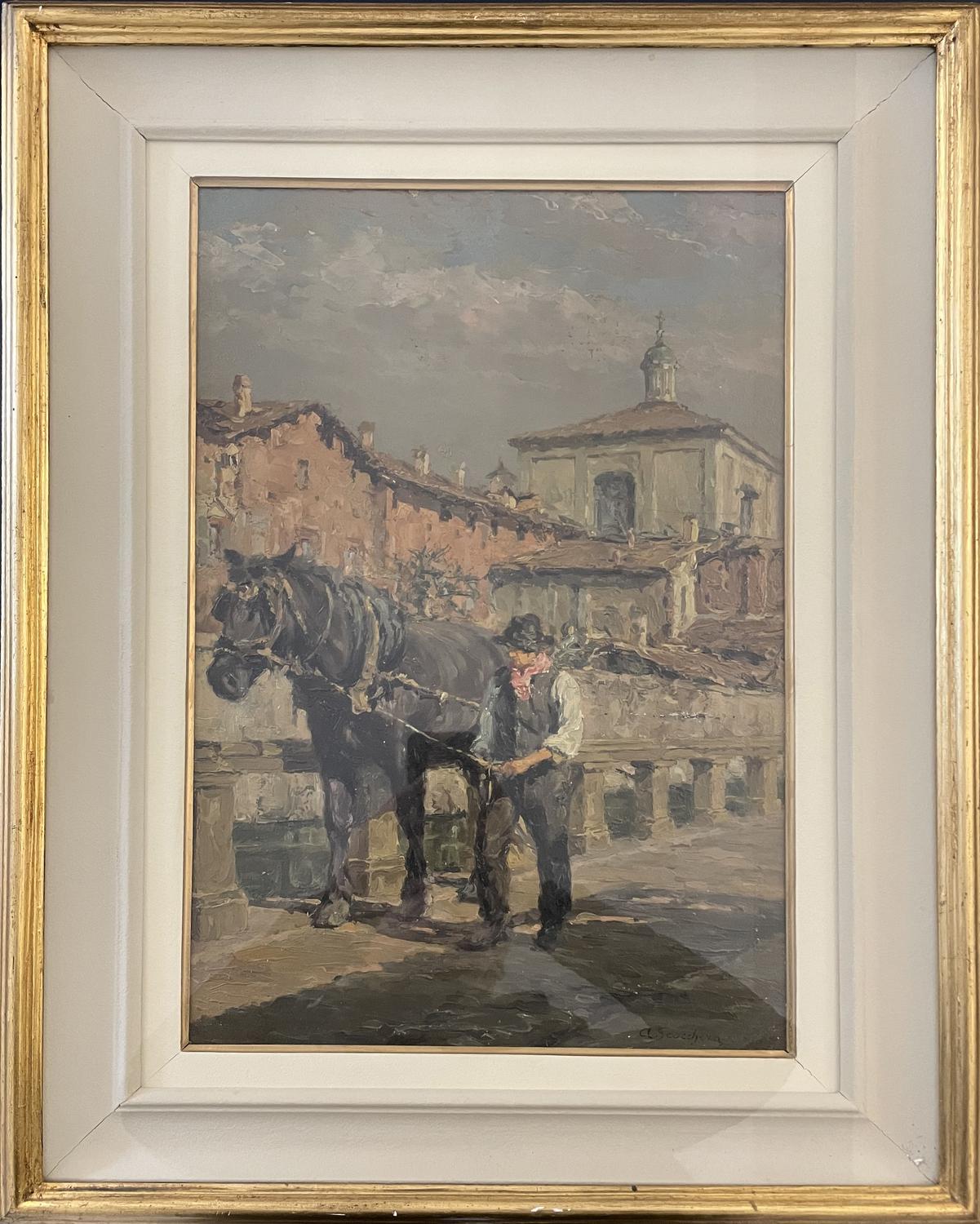 Alfredo Scocchera NAVIGLIO OSPEDALE olio su tavola, cm 49x31 firma sul retro:...
