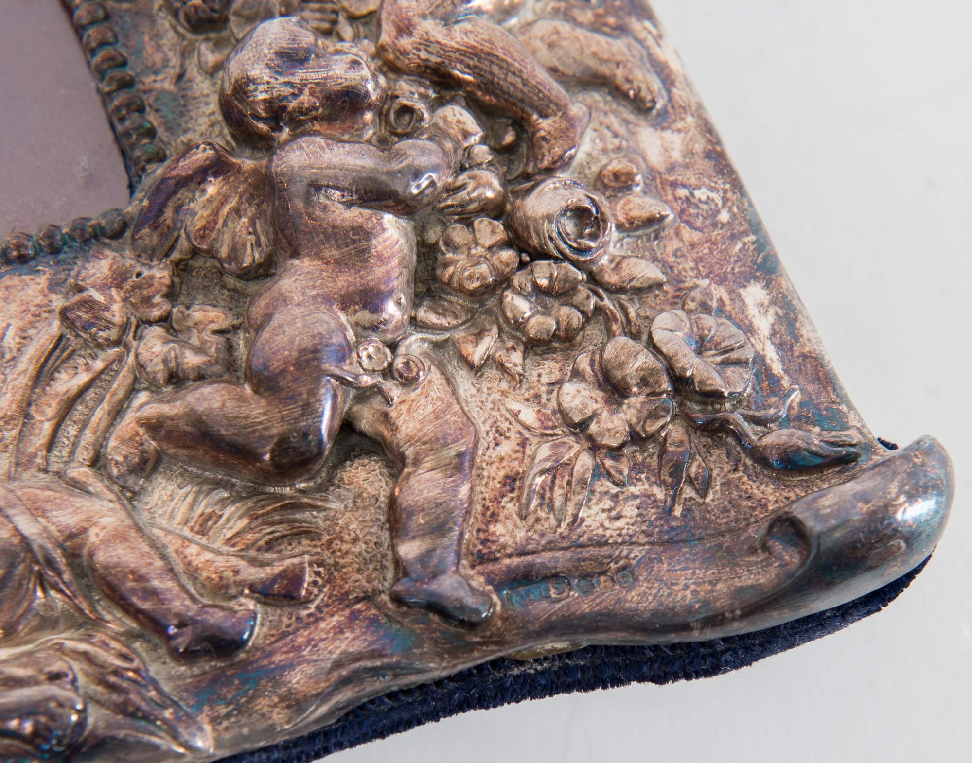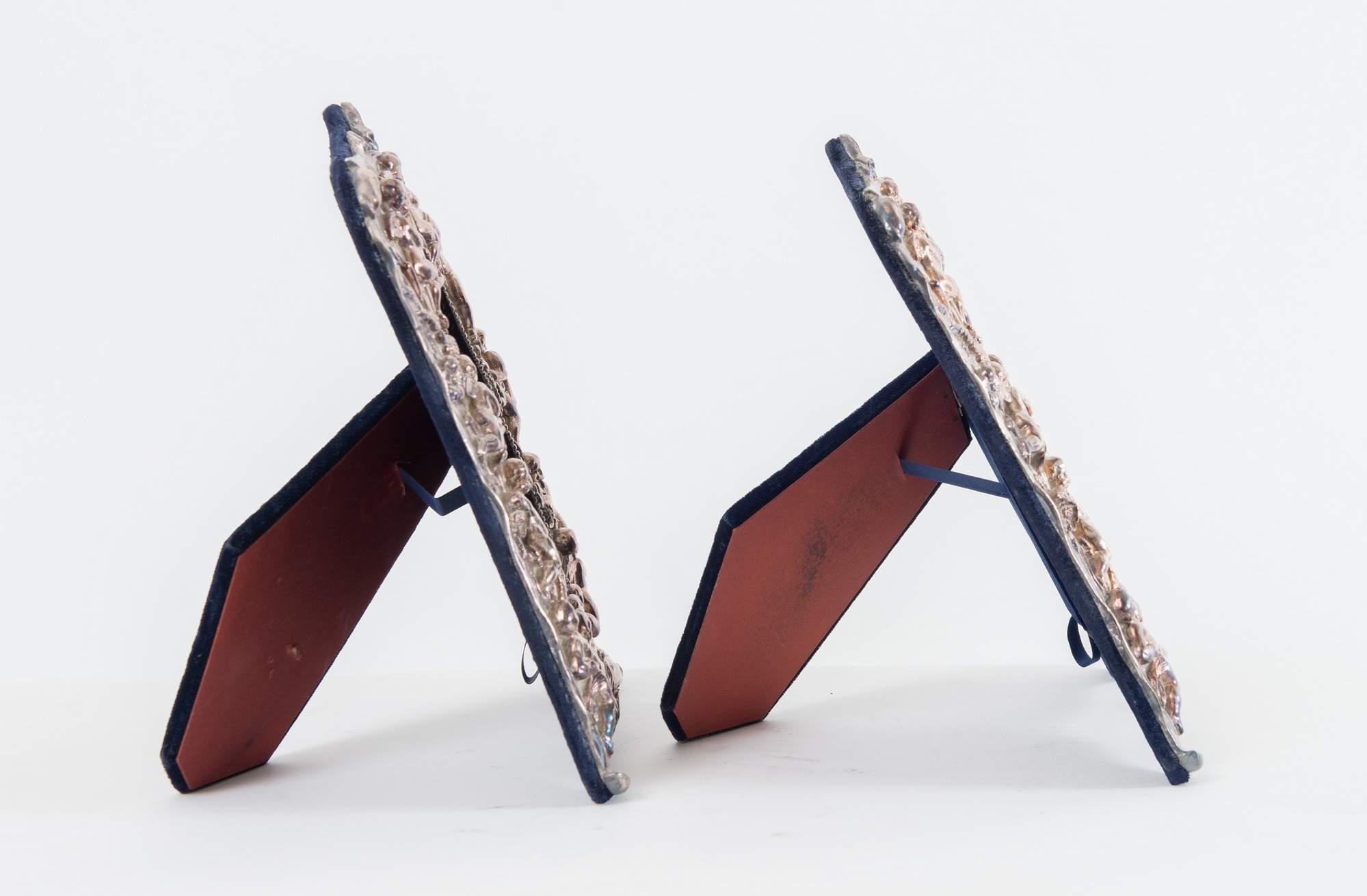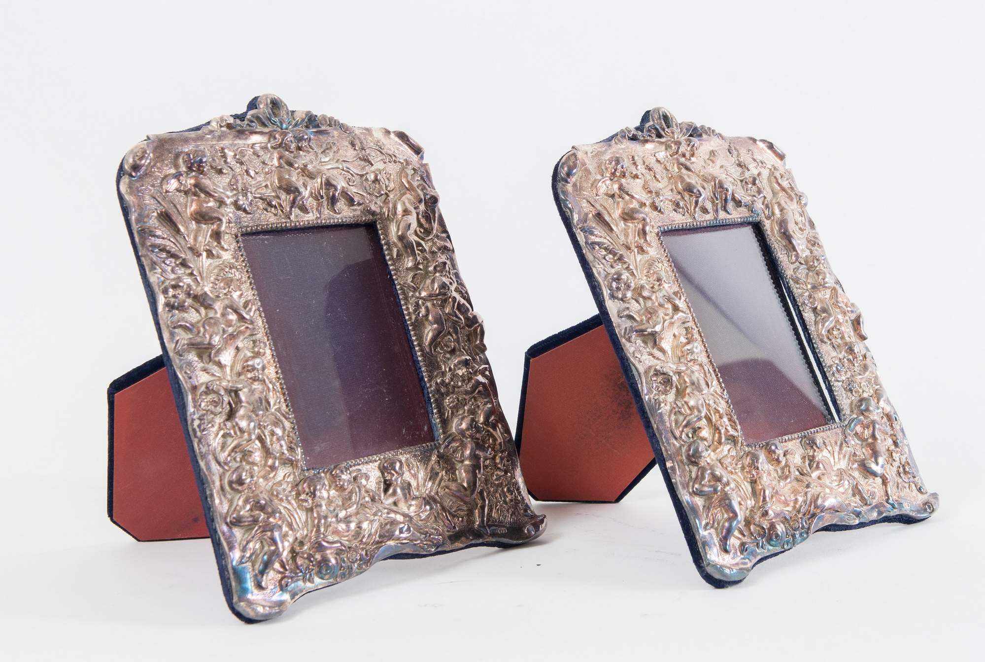 Coppia di cornici di argento. Recano sul bordo inferiore punzoni: M&LS e tre punzoni parzialmente leggibili. Cm 27x22.
