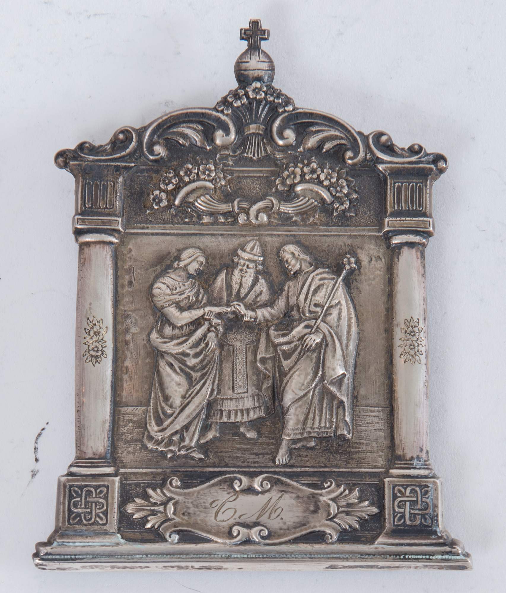 Lotto 16 | Placca matrimoniale in argento. Non reca punzoni evidenti. Peso: 166 gr. Cm...