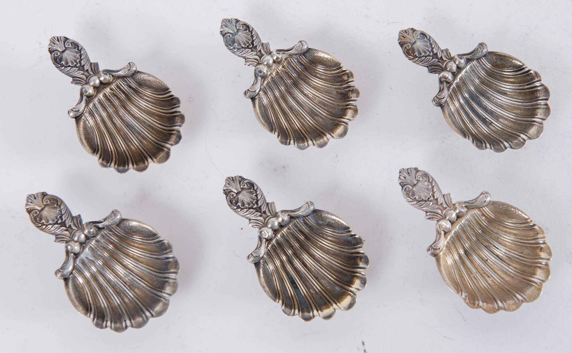 ENEA STEFANI, Bologna, XX secolo. Lotto composto da sei palette in argento 800 a forma di conchiglia. Recano punzoni sotto la base 800 e BO9. Cm 9,5x6x1. Peso complessivo: 284 gr.