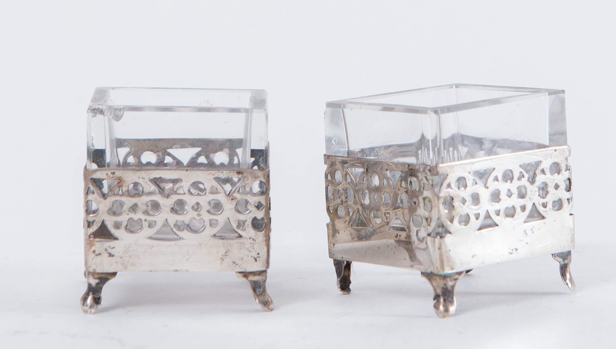 Lotto composto da due ciotoline e due saliere in vetro con supporti in...