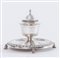 Calamaio in argento 800, poggiante su quattro piedini ferini. Sotto la base...