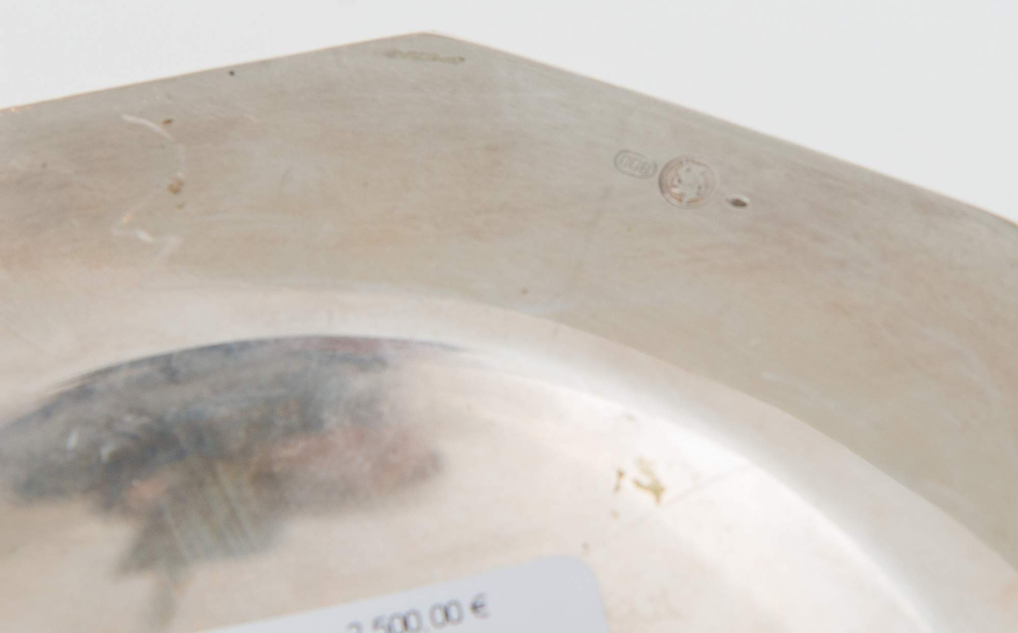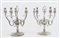 Coppia di candelabri in argento 800. Sotto la base recano punzoni: 800, lasanga locativa, stemma. Peso complessivo: 3358 gr. Rispettivamente di 1678 gr e 1680 gr. Entrambi misurano 36,5x33 cm.
