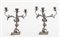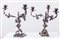 Coppia di candelabri in argento 800 con bracci a motivi fogliacei, recanti figure orientali. Sotto la base recano punzoni: 800 e uno parzialmente leggibile. Rispettivamente di 2350 gr e 2359 gr. Peso complessivo: 4709 gr. Ciascuno di H. cm 34; Ø cm 28.