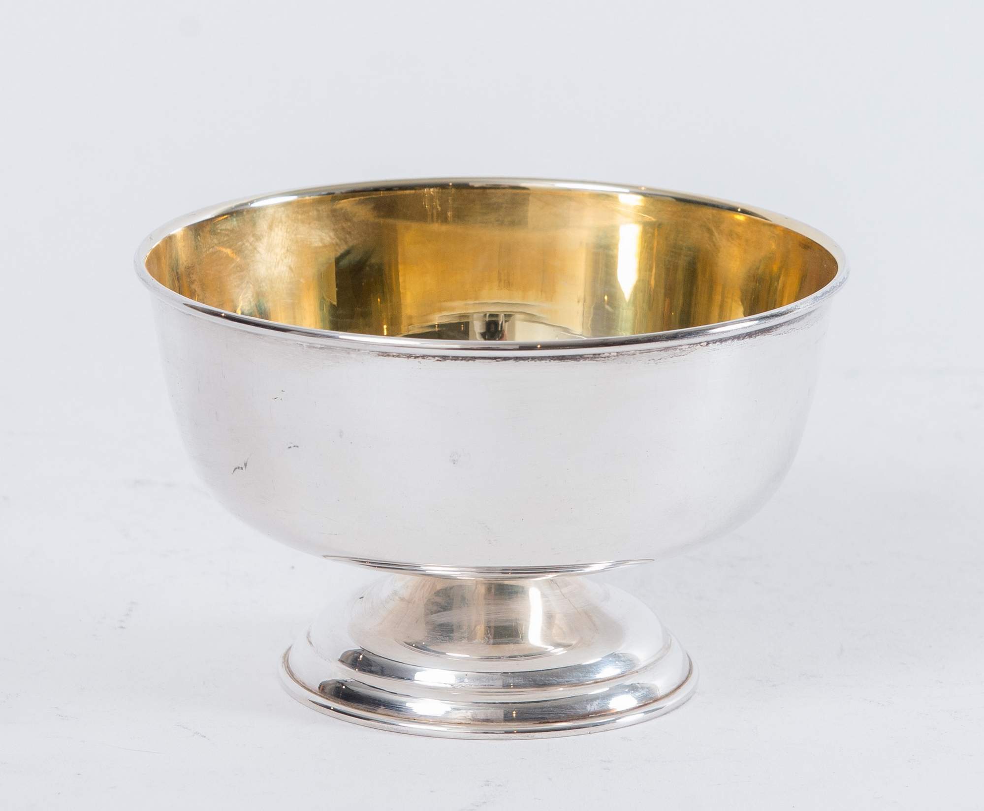 Argentiere SCANABISSI BRUNO, Bologna. Ciotola in argento 800 con interno vermeil. Reca punzoni sul bordo superiore: 800, 99BO. Ø cm 11; H cm 7. Peso: 128 gr.