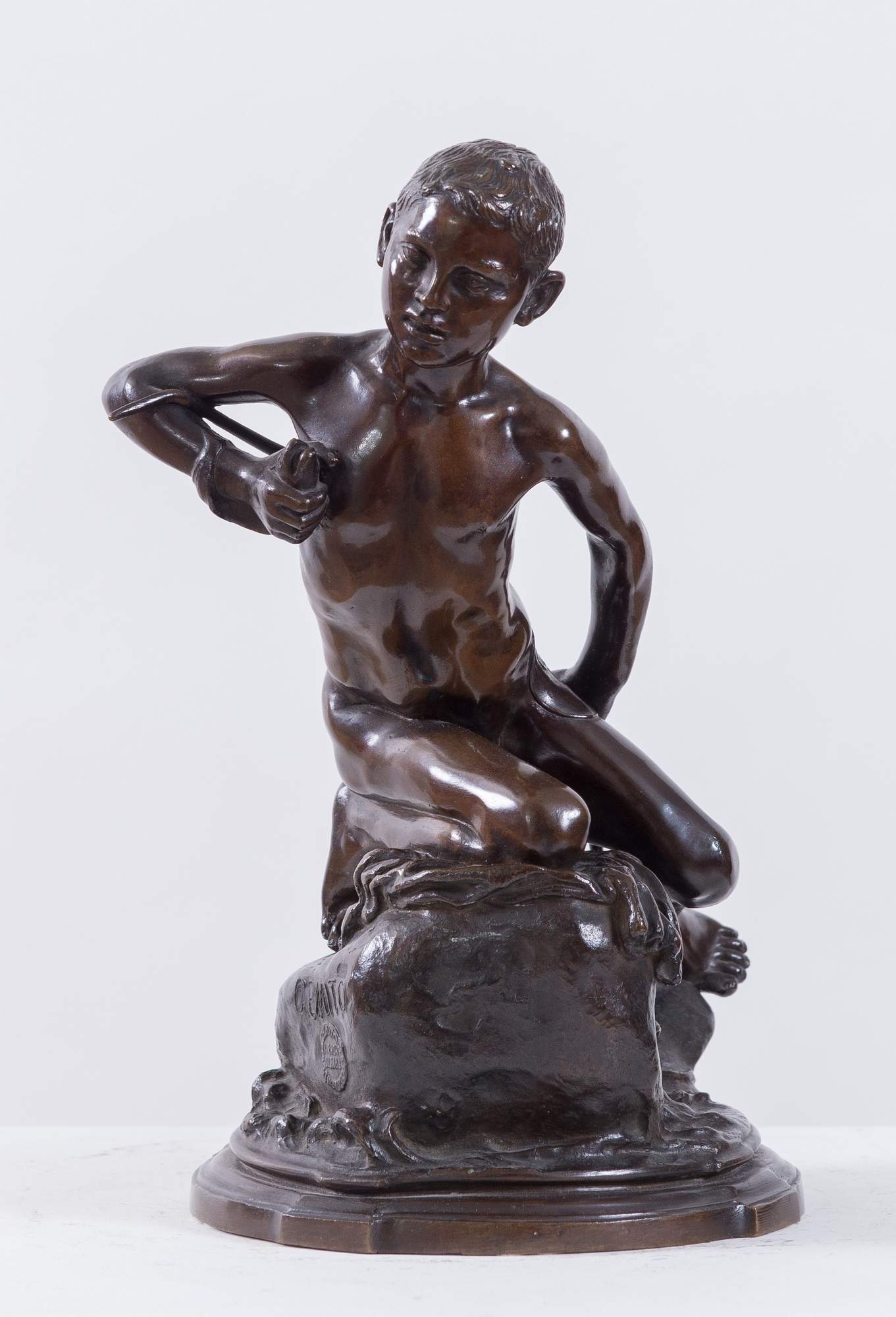 VINCENZO GEMITO (Napoli 1852 – 1929) ), attr. "Pescatore". Scultura in bronzo. Cm 24,5x17,5x14,5. Opera firmata Gemito. Reca marchio a fuoco Fonderia Gemito Napoli.