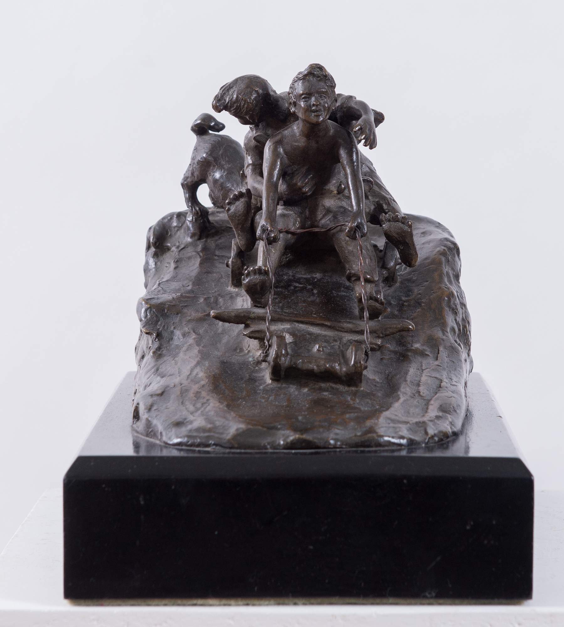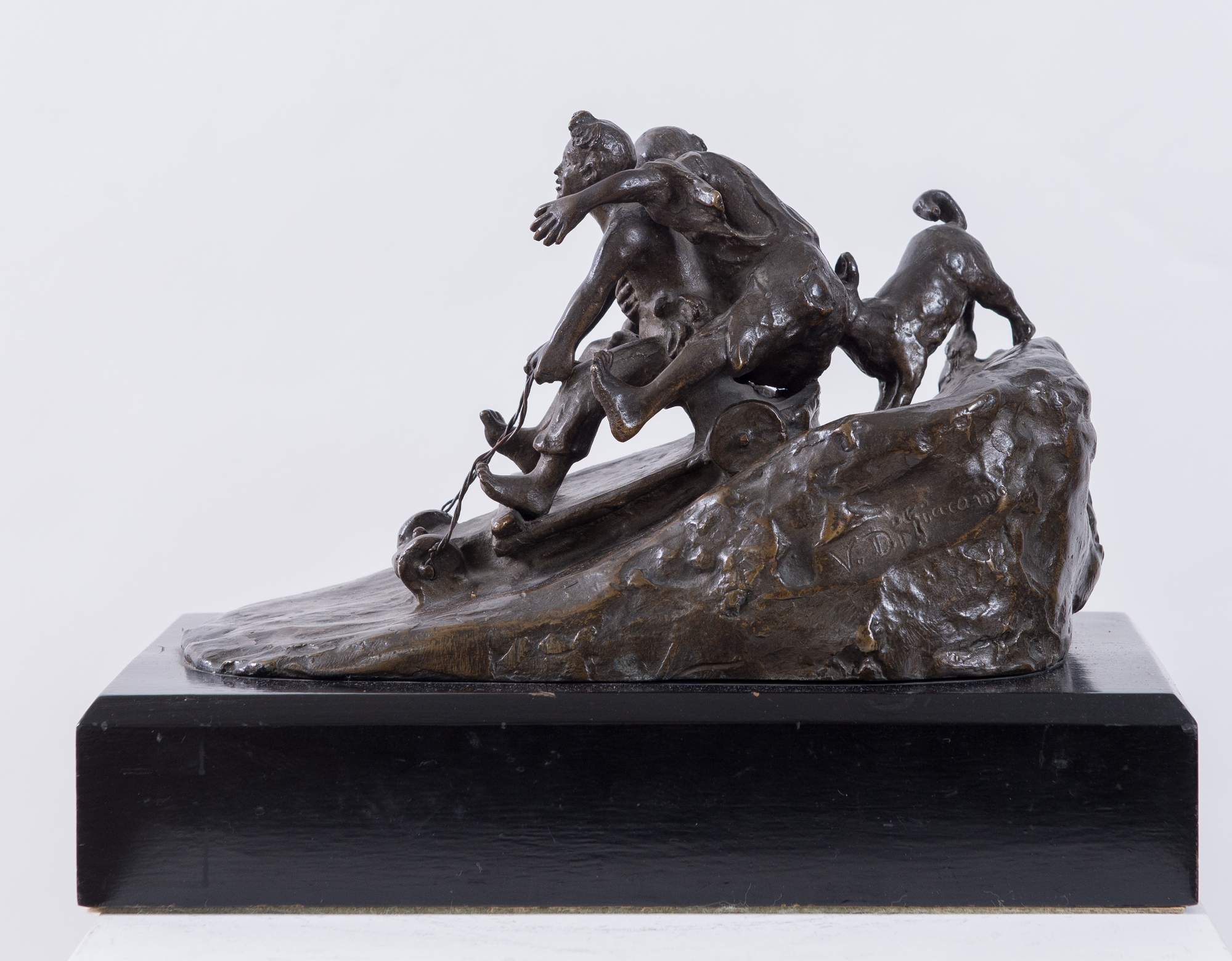 V. DI GIACOMO, XIX-XX secolo. "La discesa". Scultura in bronzo. Cm (senza basamento): 15x18x27. Opera firmata V. Di Giacomo.