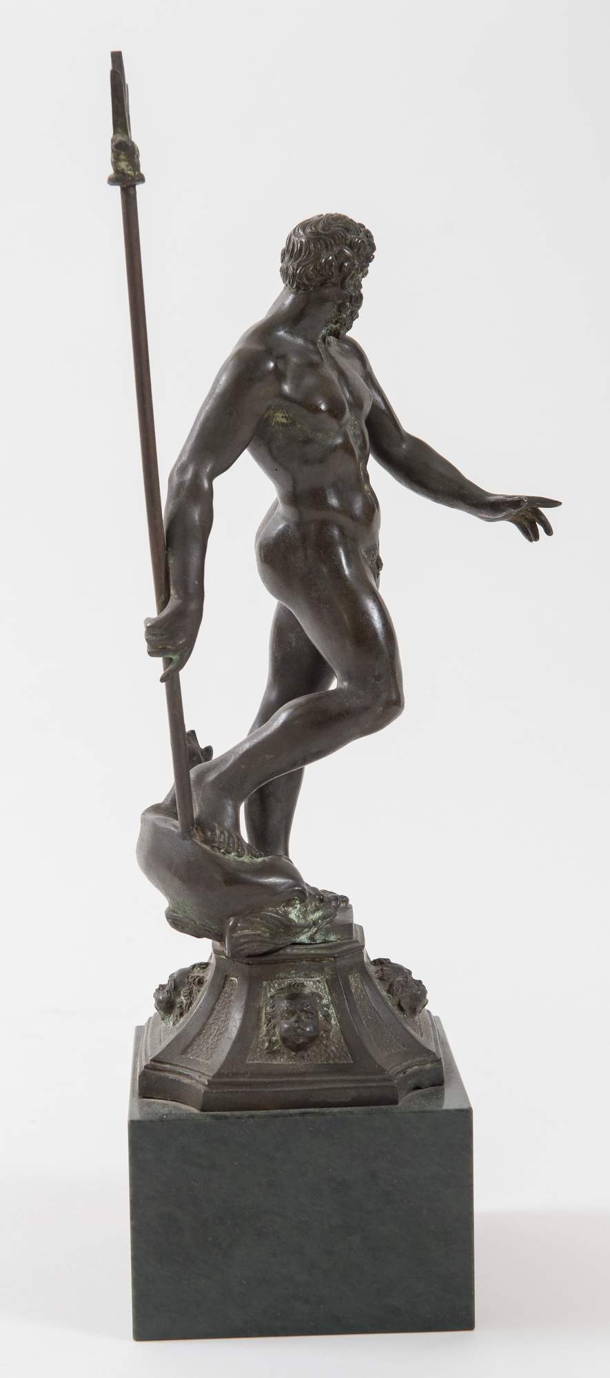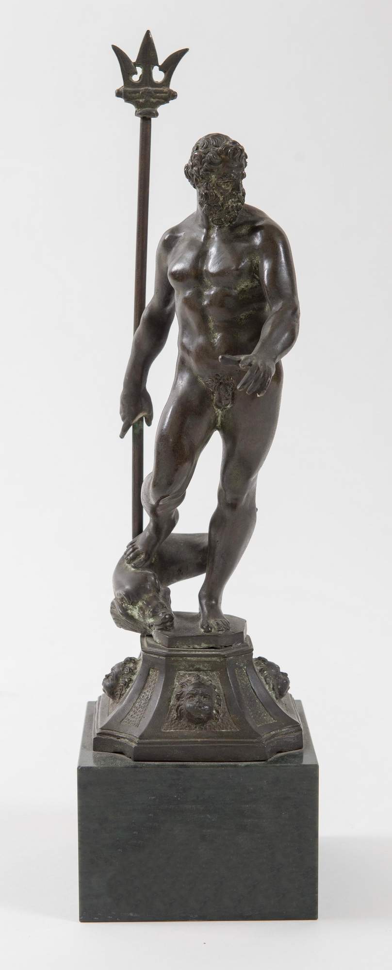 NETTUNO, XX secolo. Scultura-trofeo in bronzo con base di marmo. Copia del Nettuno del Giambologna. Cm ( senza basamento): 36x11x11. H. con basamento: cm 44,5. (difetti)