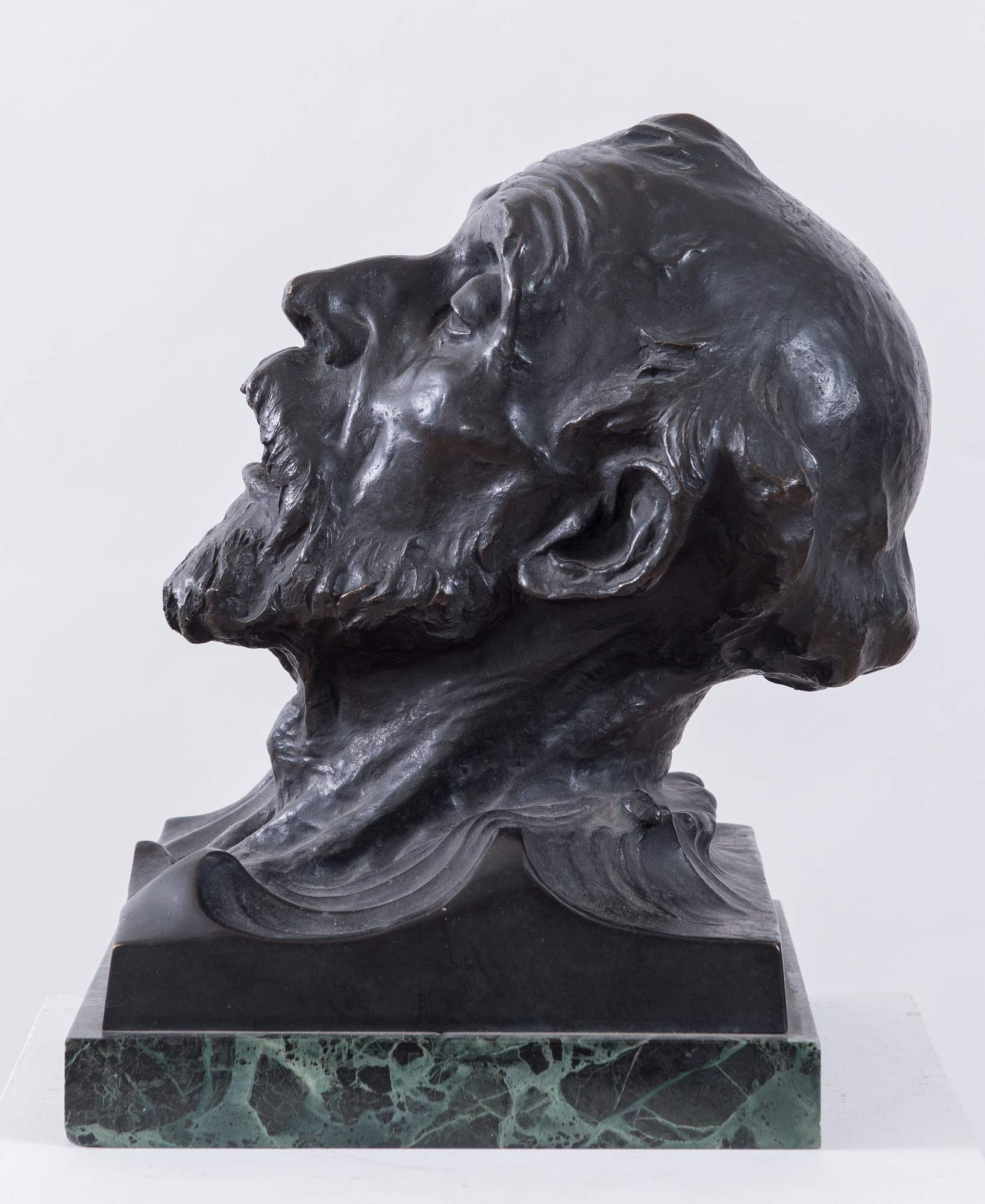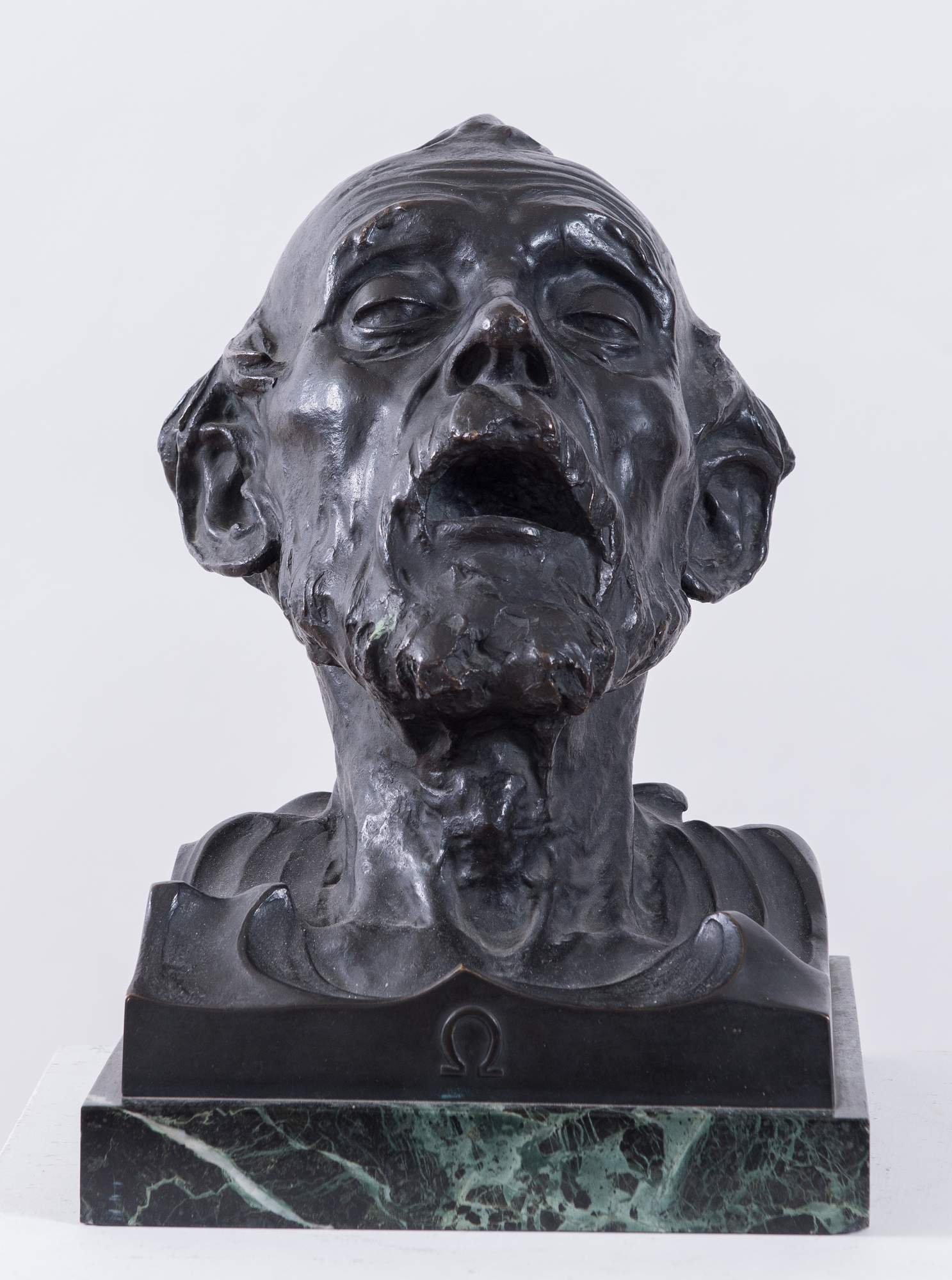 ANDREA LIPPI (1888-1916) "Testa". Scultura in bronzo. Cm (senza basamento) 27x20x20,5. H. con basamento: cm 31,5. Opera firmata sul fianco Lippi. Reca marchio Ω sul fronte.