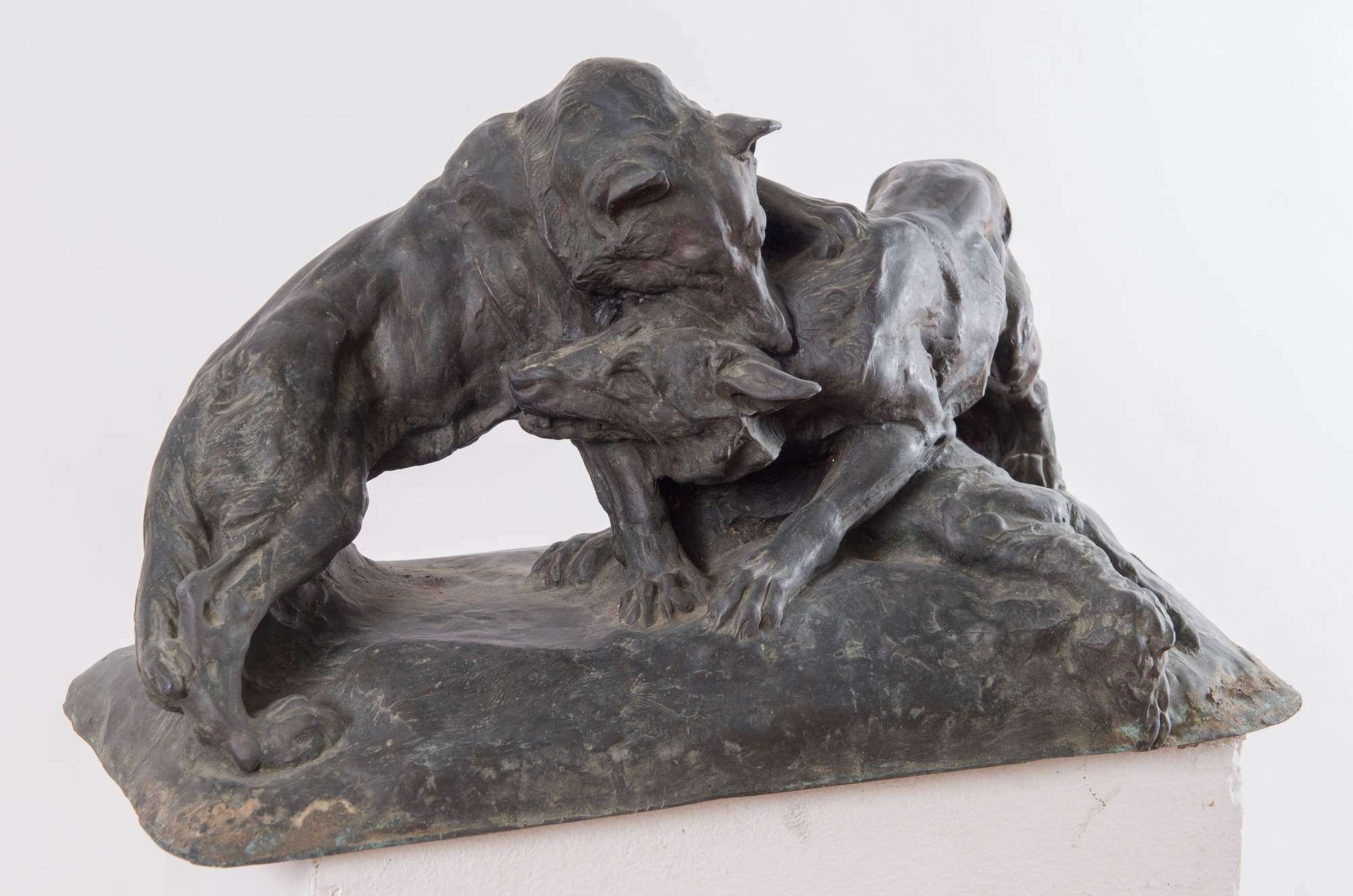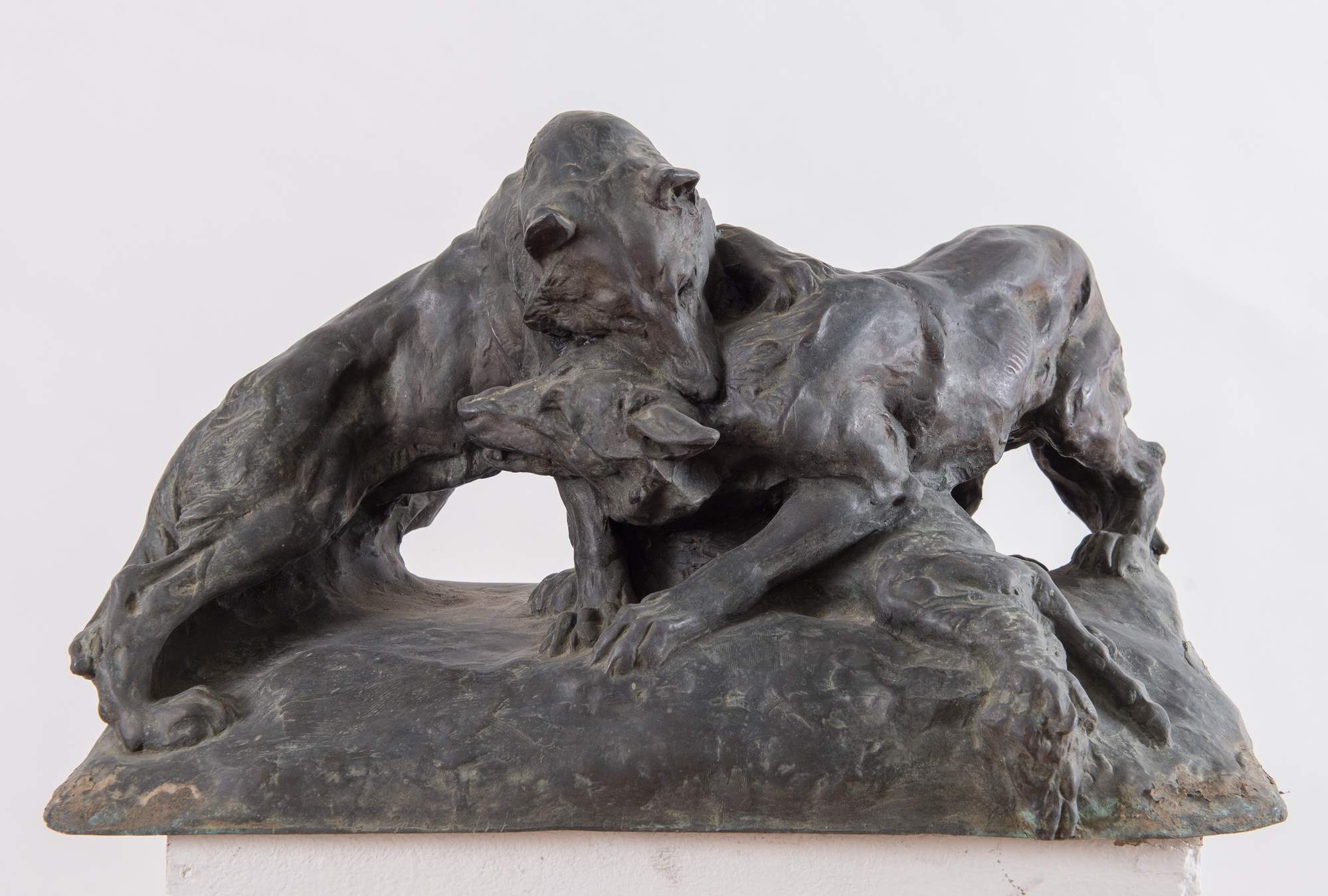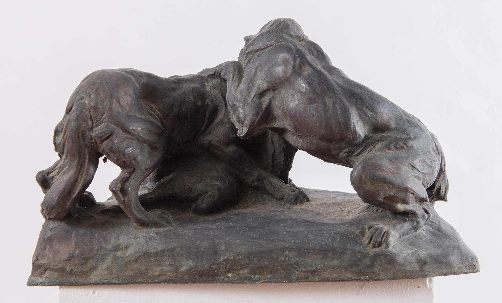 ANGIOLO VANNETTI (Livorno 1881 – Firenze 1962) "Lotta di lupi". Scultura in bronzo. Cm 28x48x25. Opera firmata al fianco Angiolo Vannetti.
