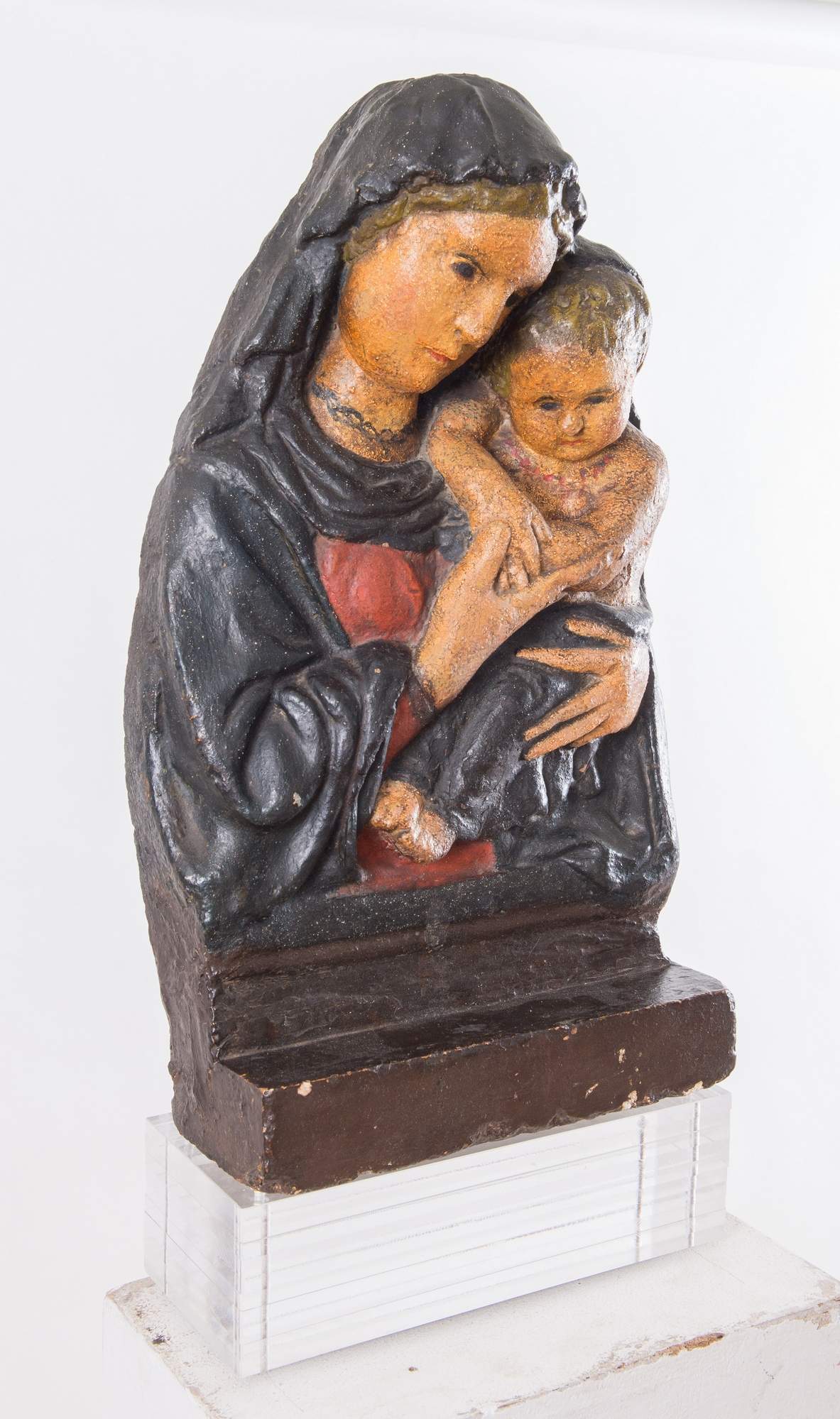 Lotto 131 | Madonna con Bambino in pietra scolpita policroma. XV/XVI secolo. Vecchia...