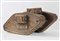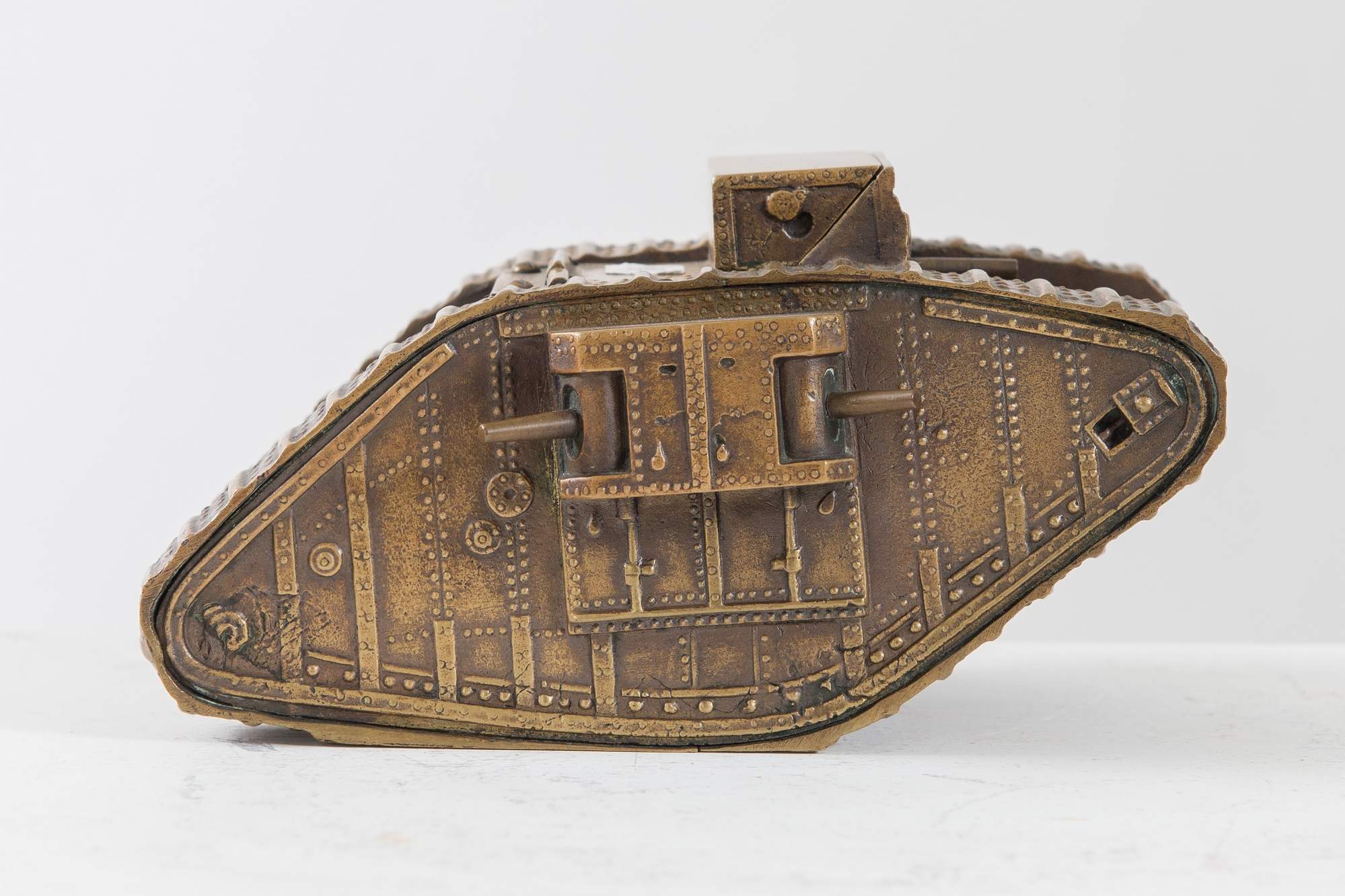 Calamaio in bronzo. Inizio del XX secolo. Realizzato a forma di tank della prima guerra mondiale dell’esercito inglese. Cm 9x16,5x11,5.
