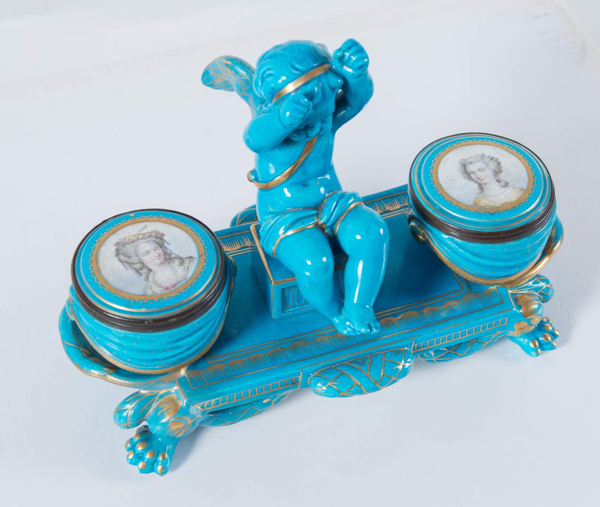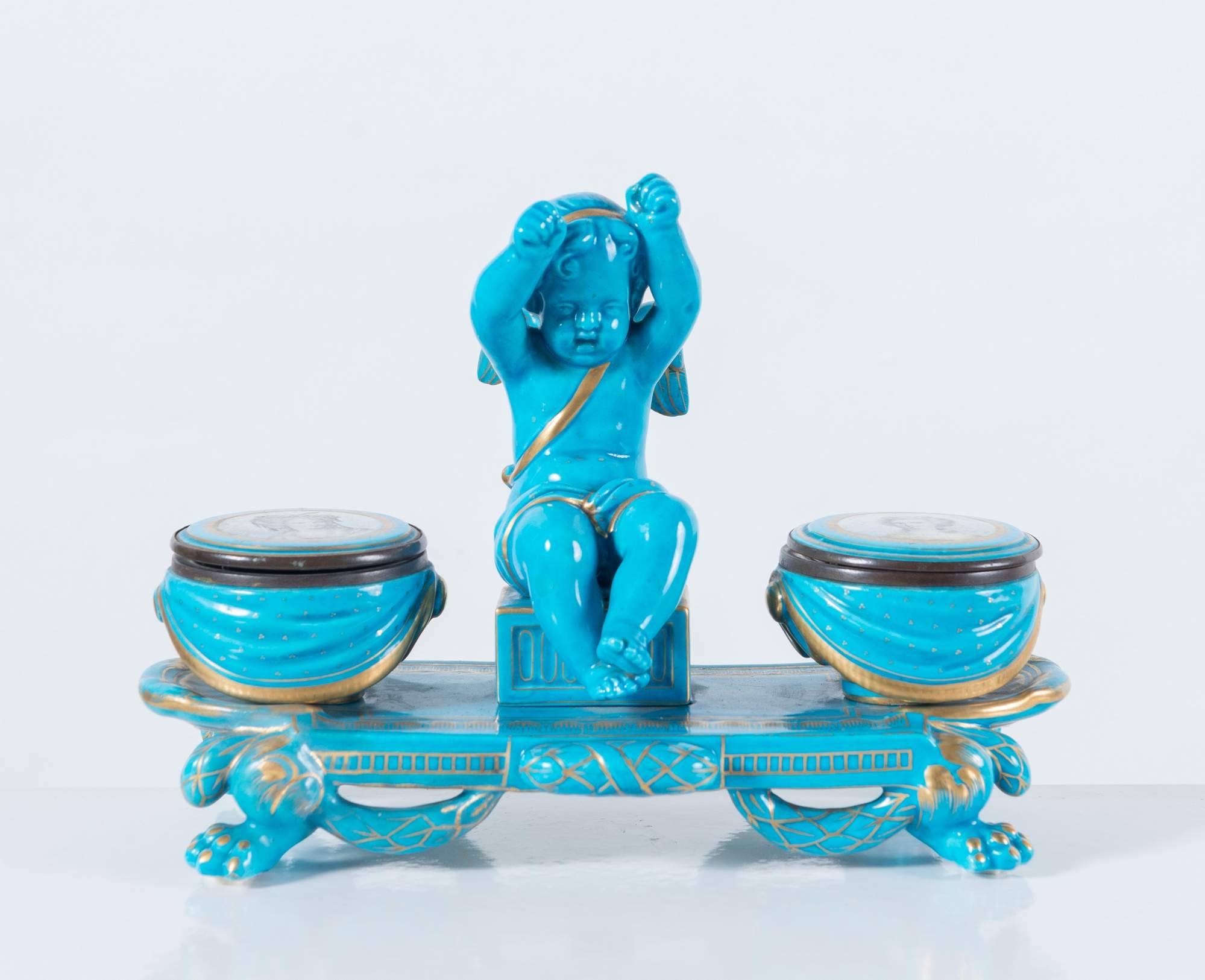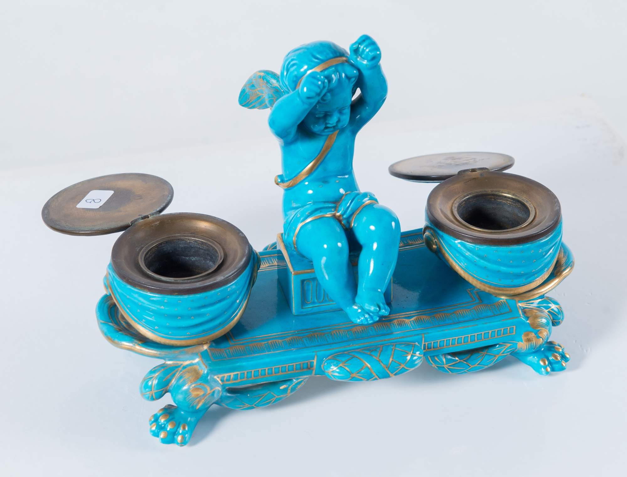 Lotto 146 | Calamaio di porcellana. Francia, metà del XIX secolo. Reca decori in oro e...