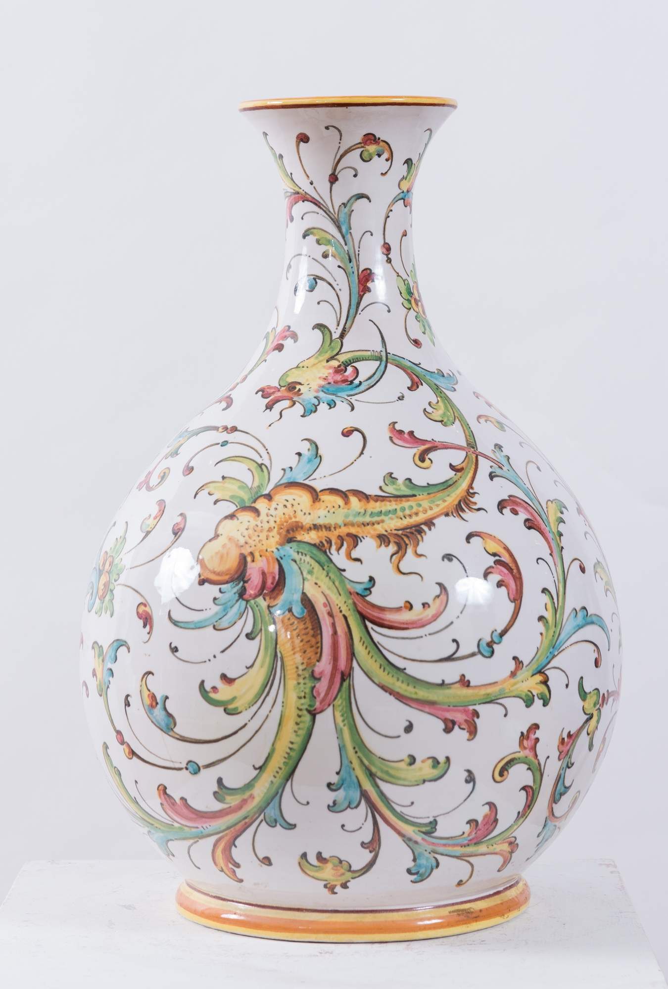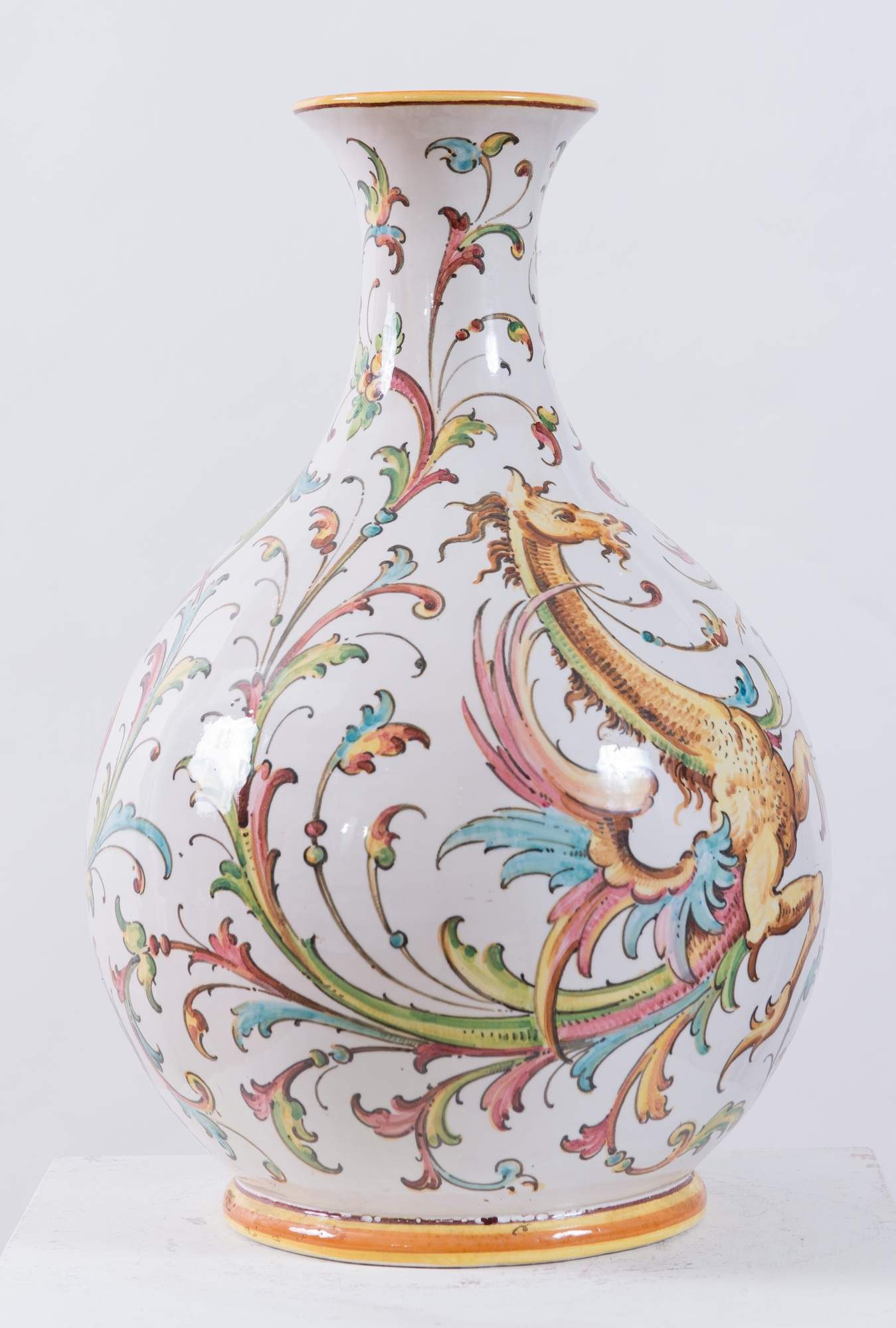 ANGELO MINGHETTI, Bologna, XX secolo. Vaso in ceramica policroma. H. cm 40;...