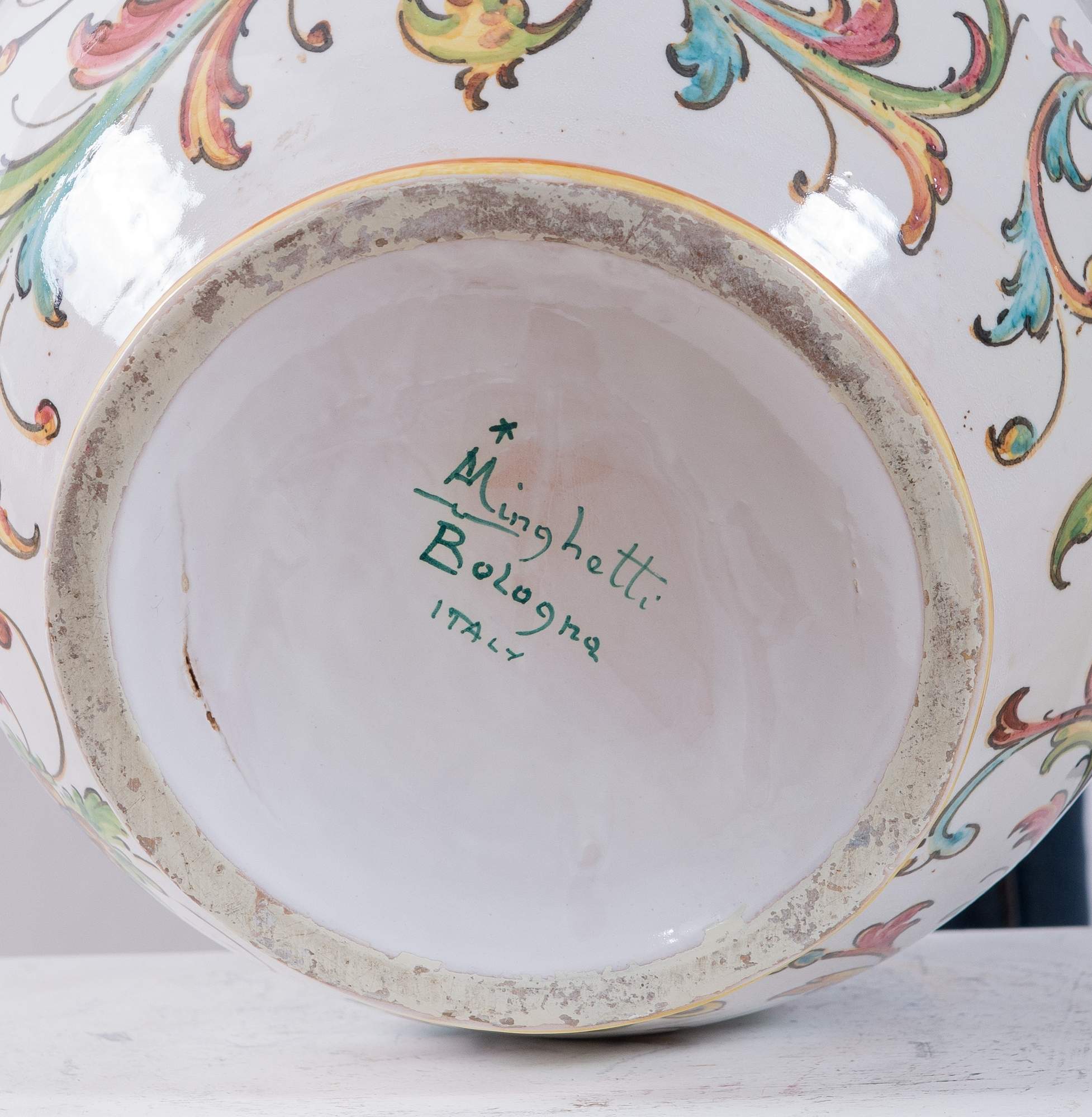 ANGELO MINGHETTI, Bologna, XX secolo. Vaso in ceramica policroma. H. cm 40; diametro cm 25. Sotto la base reca scritta Minghetti Bologna Italia. (difetti)