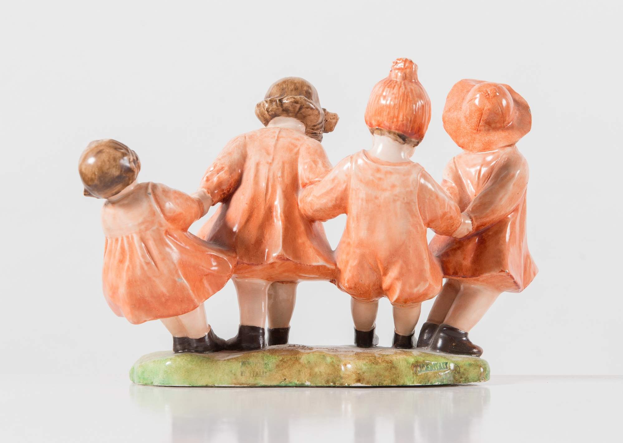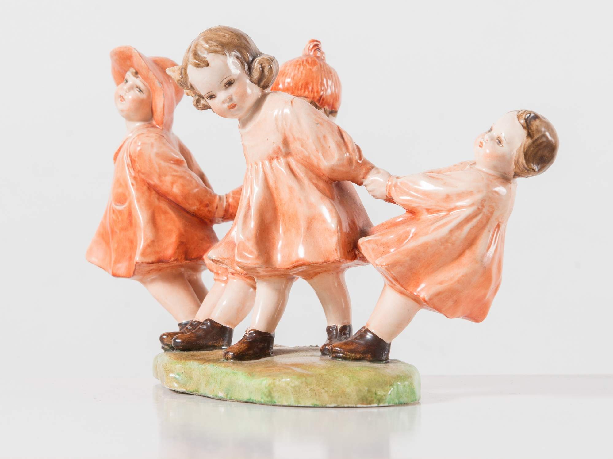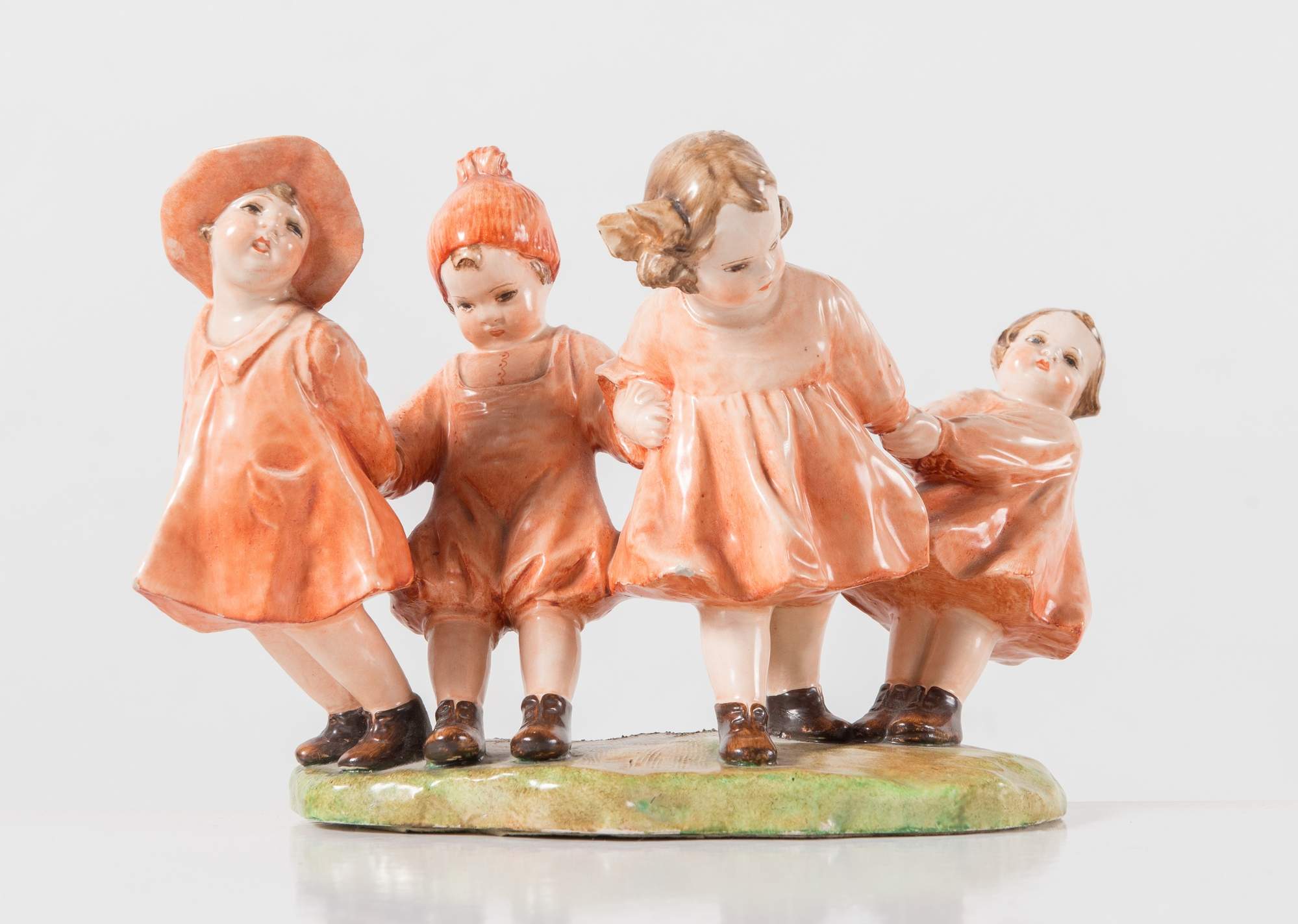 CACCIAPUOTI, XX secolo. "Bambine". Scultura in ceramica policroma. Cm...