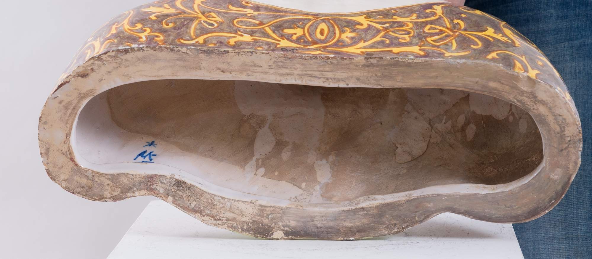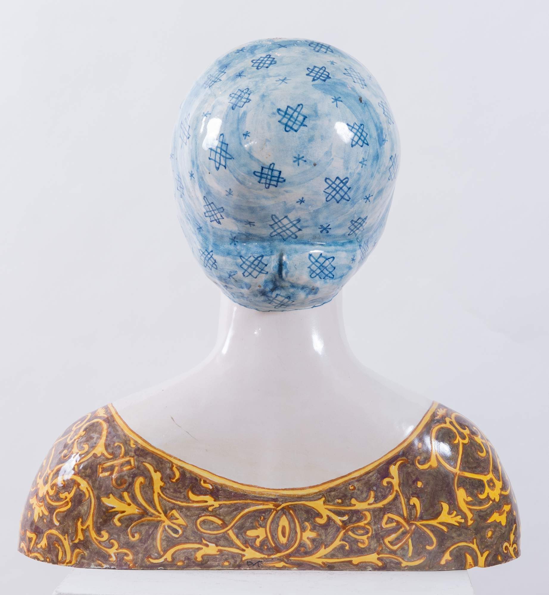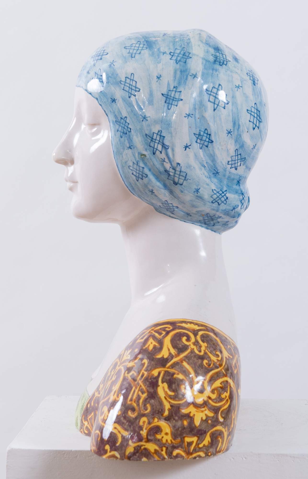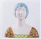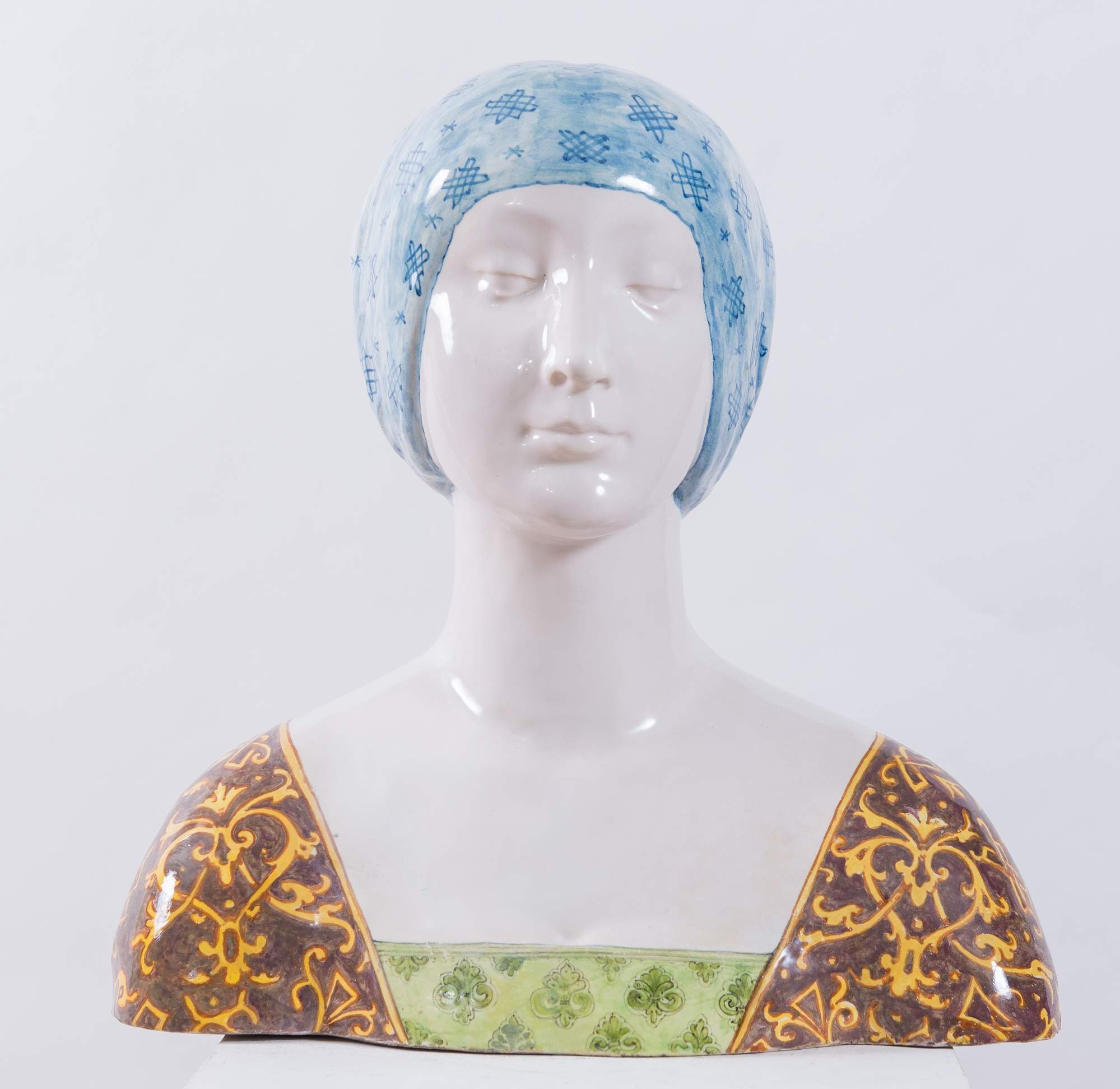 ANGELO MINGHETTI, Bologna, XX secolo. "Busto di Giuditta", realizzato in ceramica policroma. Cm 41x39x23. Opera siglata AM.