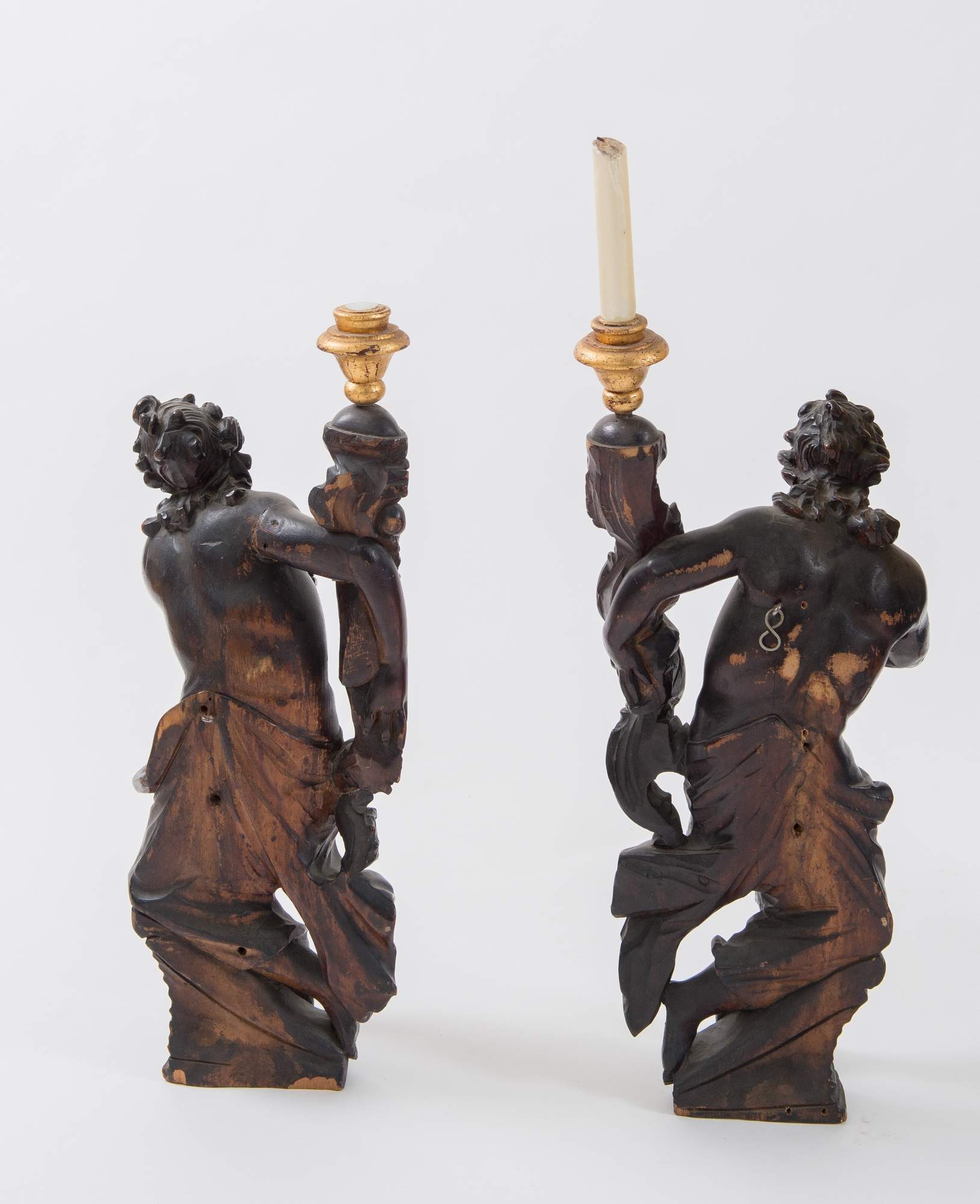 Coppia di statue reggicero, XVIII secolo, realizzate in legno di cirmolo...