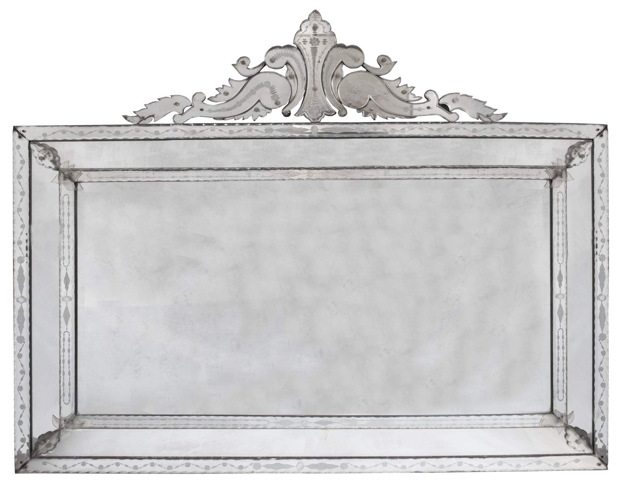 Grande specchiera veneziana. Murano, anni '30 del XX. Reca vetri incisi e...