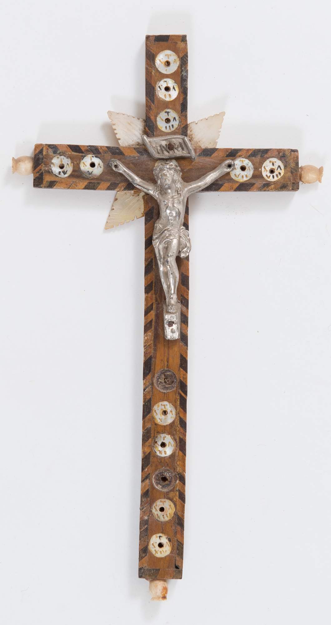Crocifisso con stazioni della via crucis. Italia settentrionale, XIX secolo. Cm 25,5x15. (difetti e mancanze)