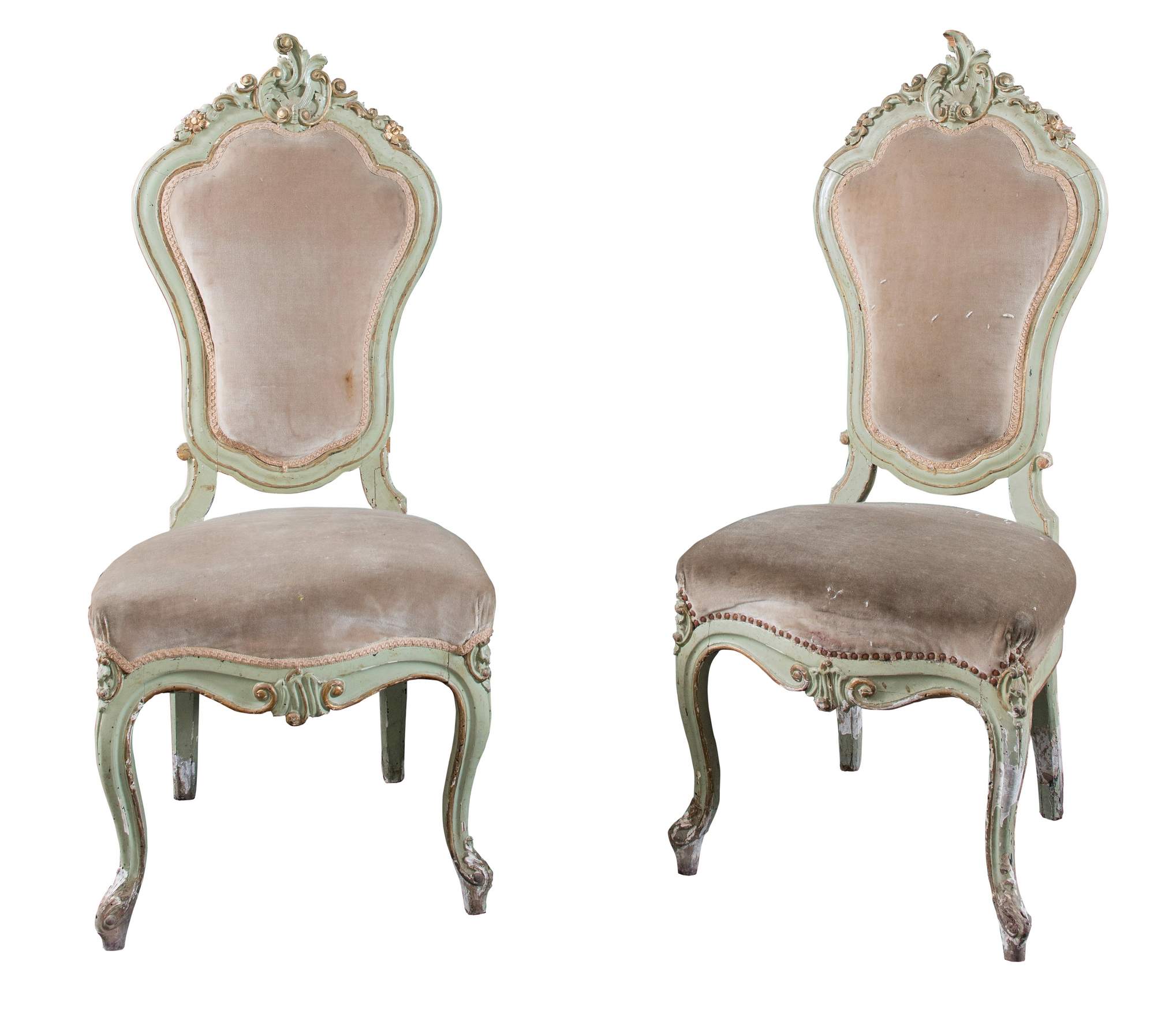 Lotto composto da SEI SEDIE imbottite in legno laccato e dorato. Lombardia, metà del XIX secolo. Cm 120x46x49. (difetti)
