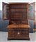 TRUMEAU. Emilia, prima metà del XVIII secolo. Lastronato in radica di noce con filettature in ciliegio e acero. La parte bassa presenta tre cassetti con fronte e una ribalta celante cassetti finemente intarsiati. Le ante della parte alta, recanti specchi al mercurio, celano un interno ripartito in quattro ripiani. Nello zoccolo inferiore dell’alzata sono presenti i piretti portacandele. Cm 205x113x54. (lievi difetti)