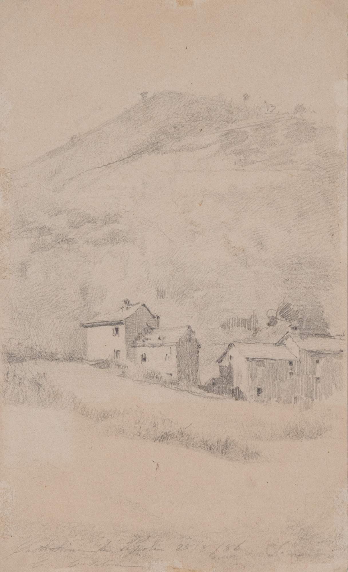 CORIOLANO VIGHI (Firenze 1846 - Bologna 1905), attr. “Castiglione dei Pepoli”. Disegno su carta. Cm 16,5x10,5.
