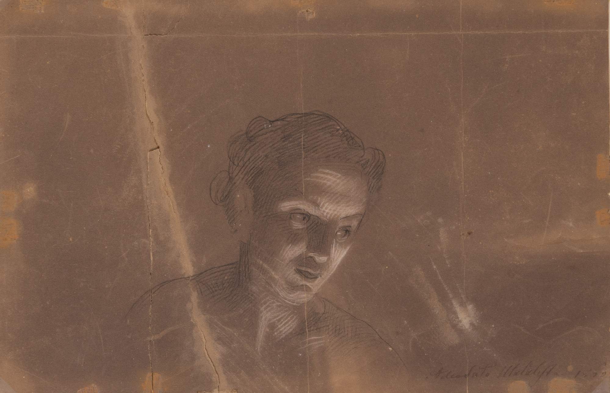 ADEODATO MALATESTA (Bologna 1815 – 1883). "Studio di donna". Tecnica mista su cartoncino. Opera firmata in basso a destra Adeodato Malatesta. Cm 18,5x28,5.