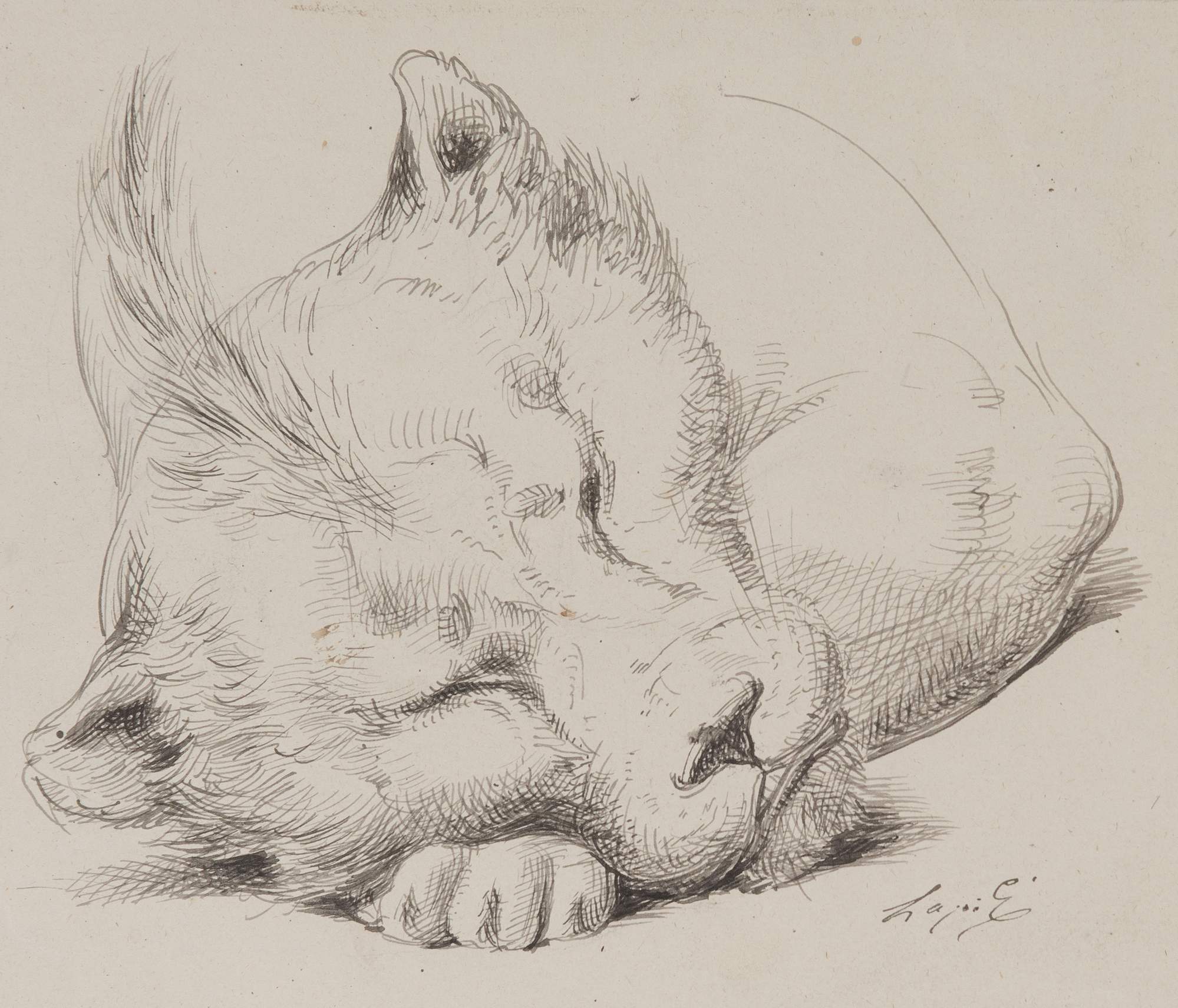 ENZO LAPIS (Bologna 1814 - 1884). "Leonessa". China su carta. Cm 20x22. Opera firmata in basso a destra. Lapis E.