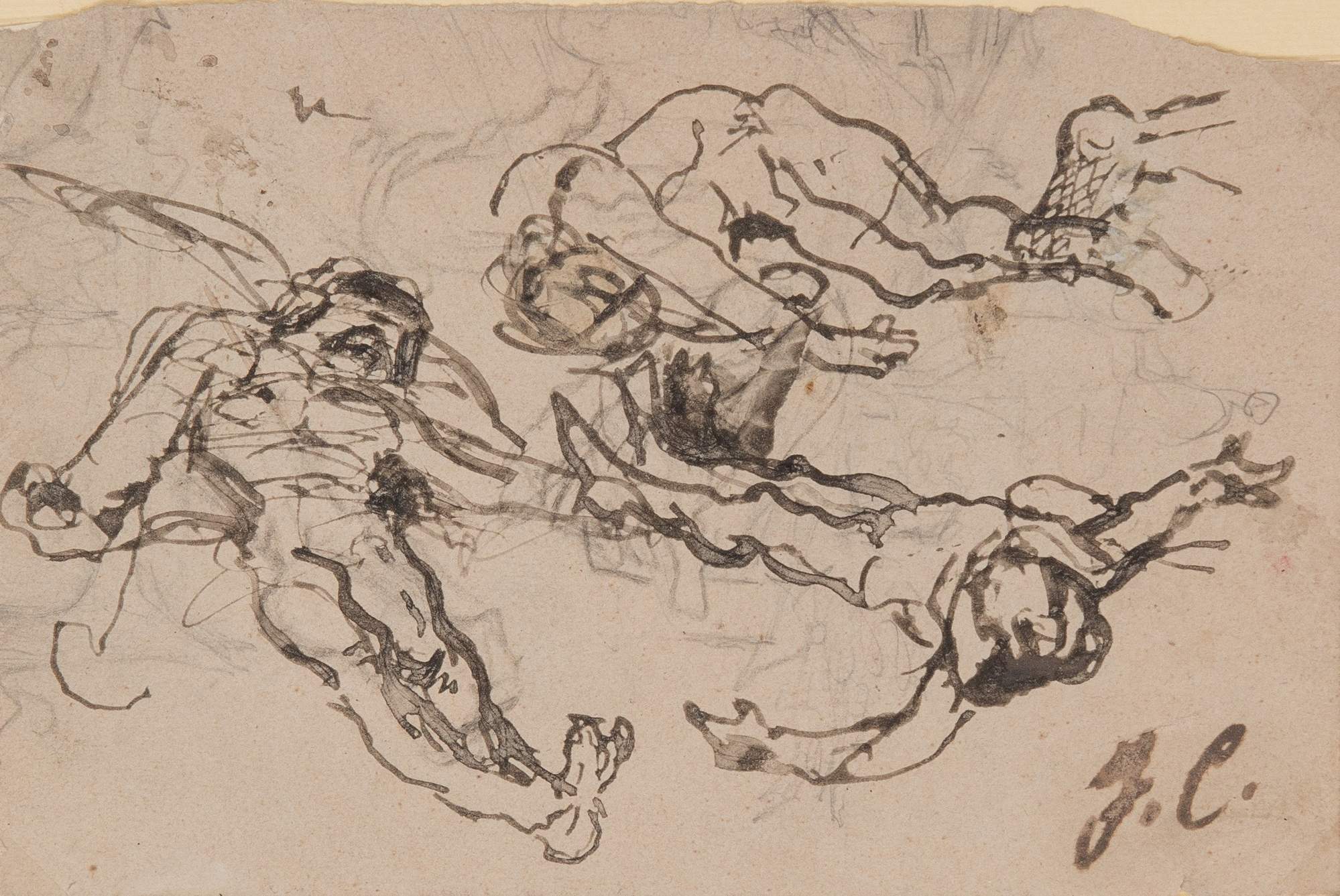 FELICE CARENA (Cumiana 1879 - Venezia 1966). “Studio di figure distese”. China su carta. Cm 10x15. Opera siglata in basso a destra F. C.
