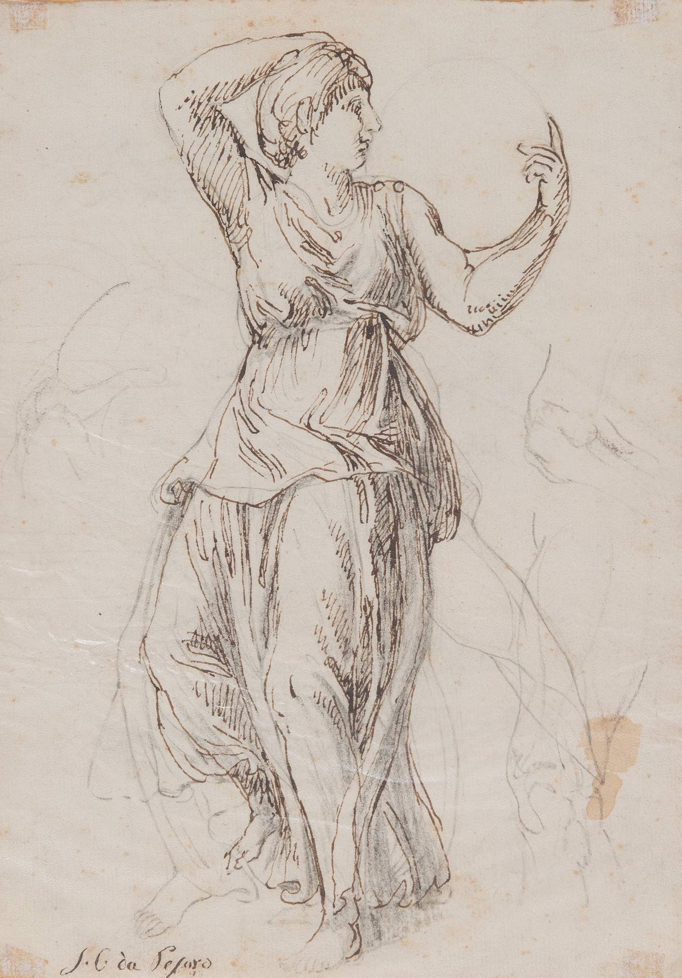 Maestro del XVIII secolo. “Figura allegorica”. Disegno a matita e china su...