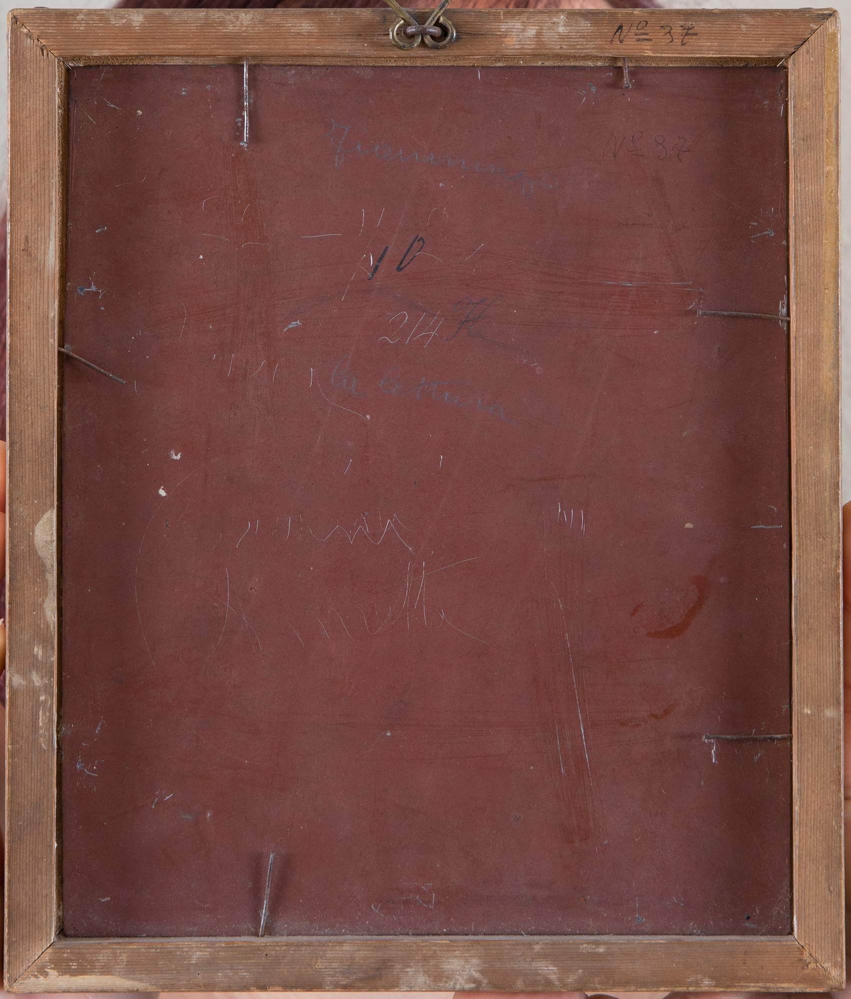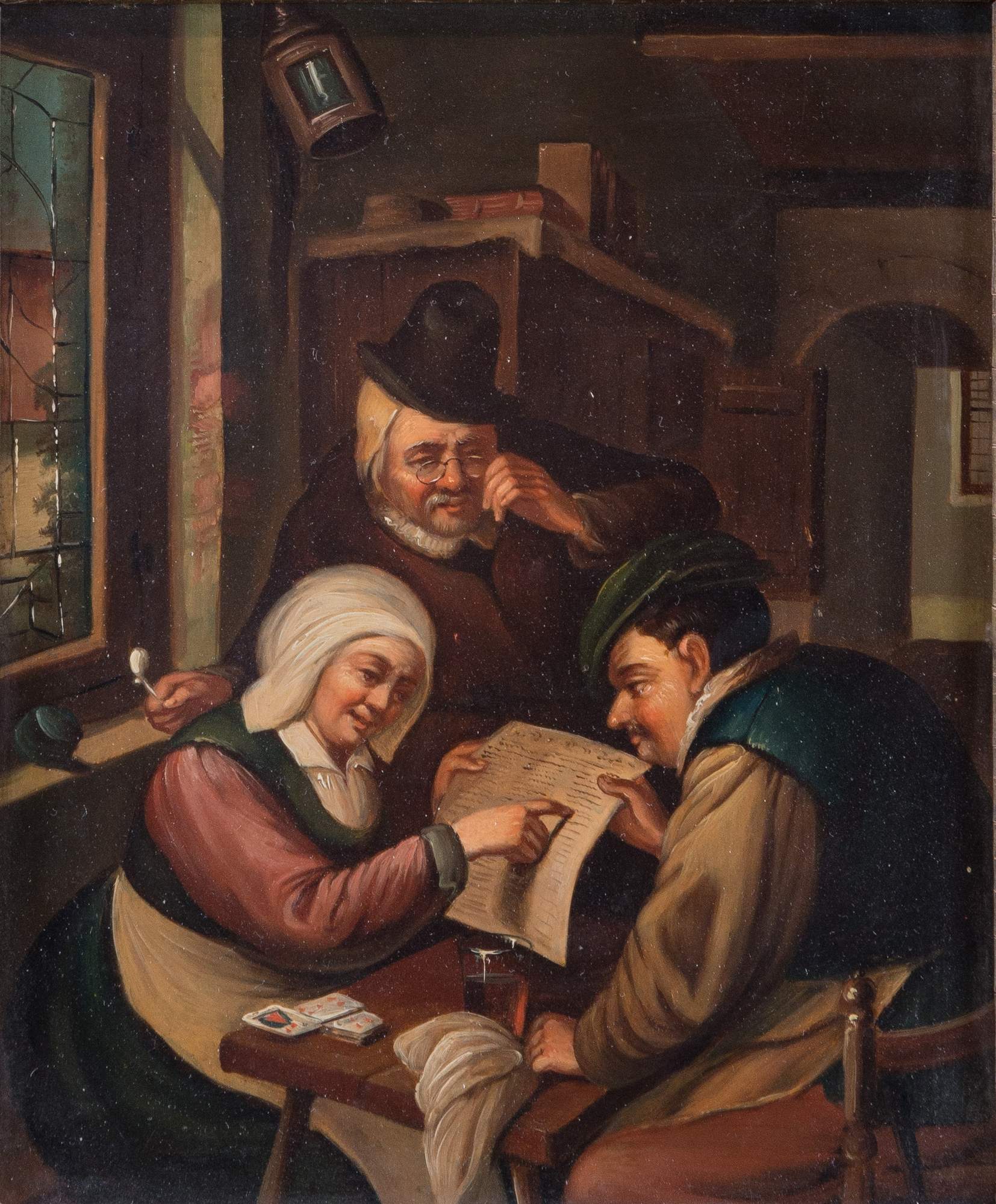 Maestro fiammingo del XIX secolo. “Scena di interno”. Olio su metallo. Cm 20x17.