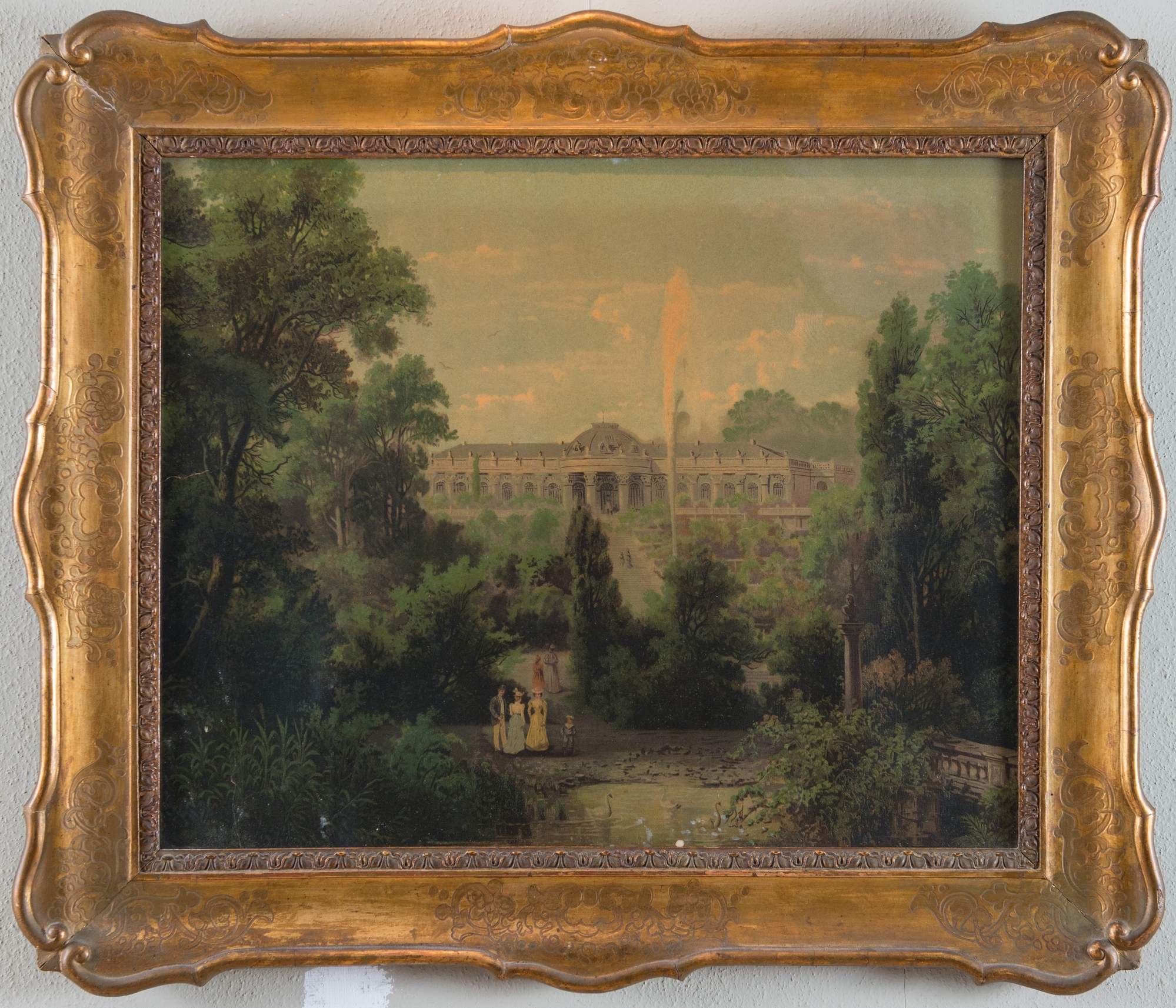 Maestro del XIX secolo. "Paesaggio". Olio su tela. Cm 45x56. Dipinto entro cornice cabaret.