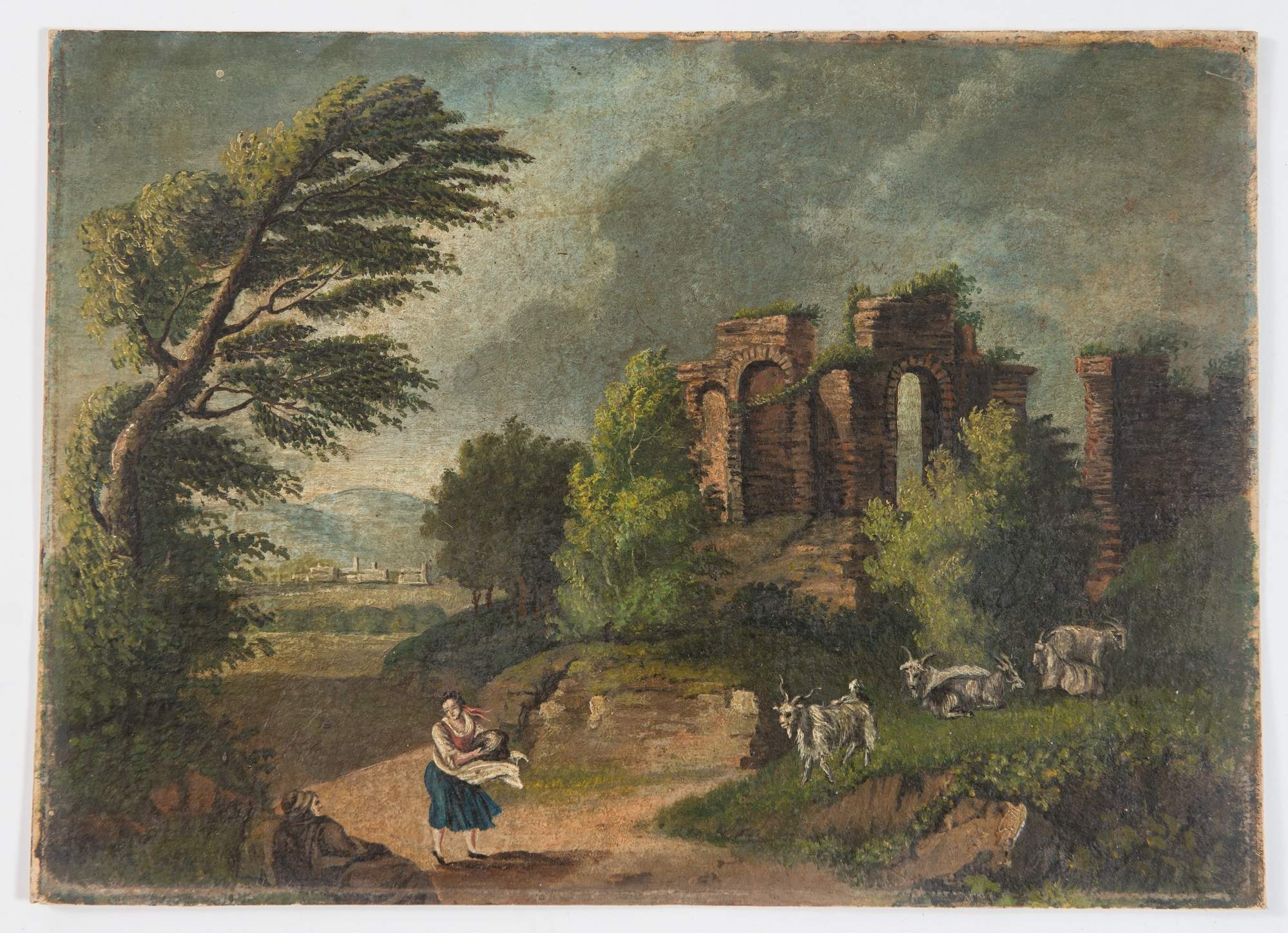 Maestro del XX secolo. Coppia di olio su cartone, raffiguranti vedute. Ciascuno di cm 23,5x32,5.