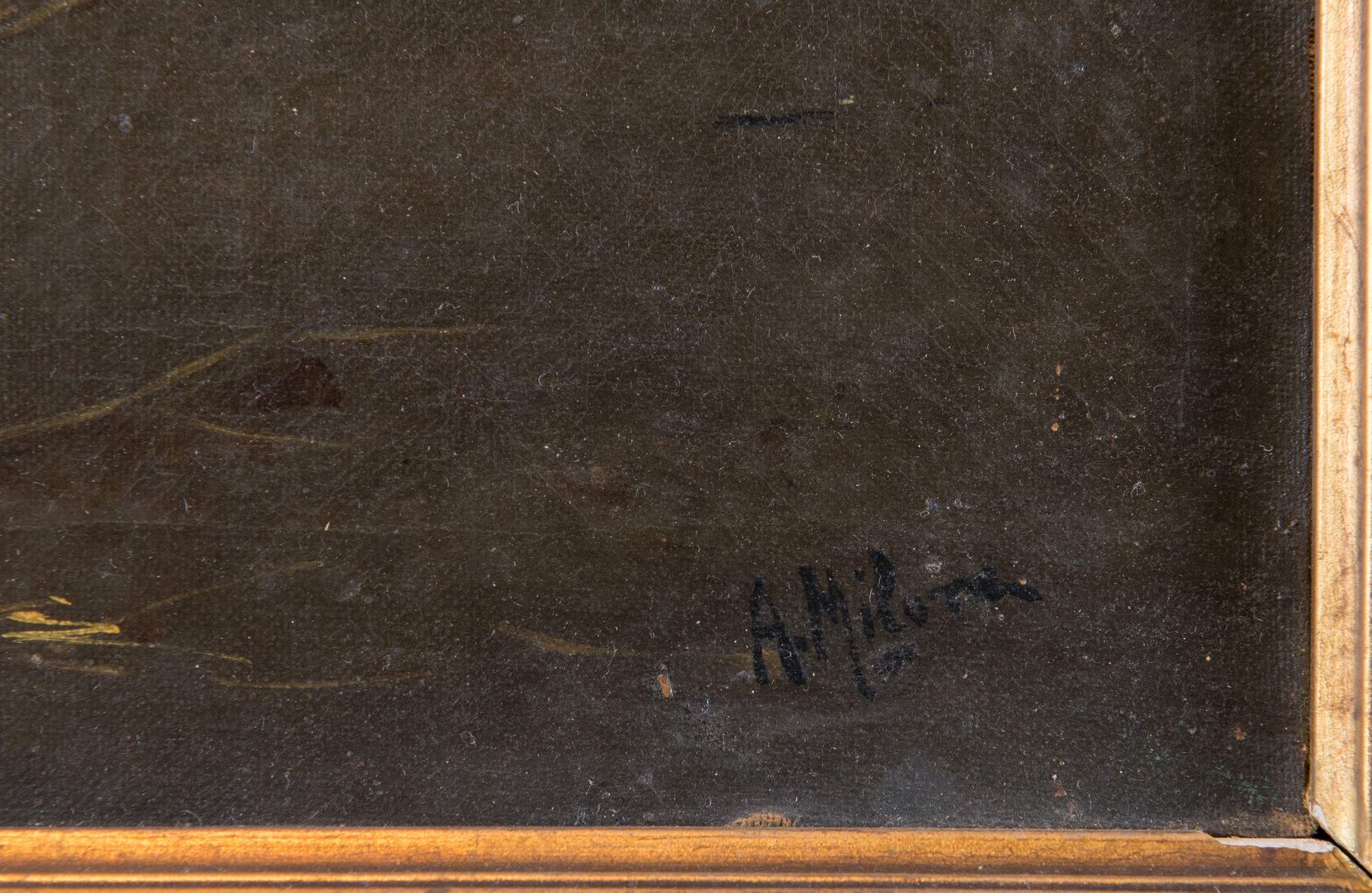 ANTONIO MILONE (Napoli 1834 - 1919) "Galli". Olio su tela. Cm 27x40. Opera firmata in basso a destra A. Milone.