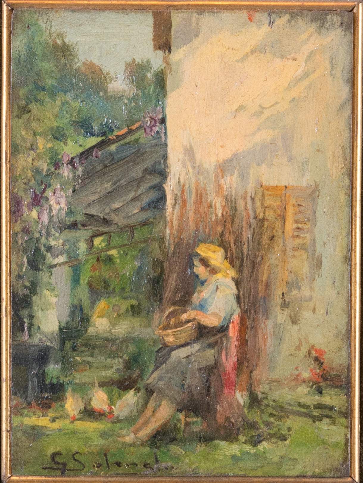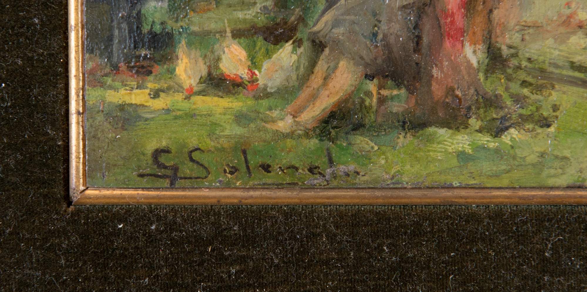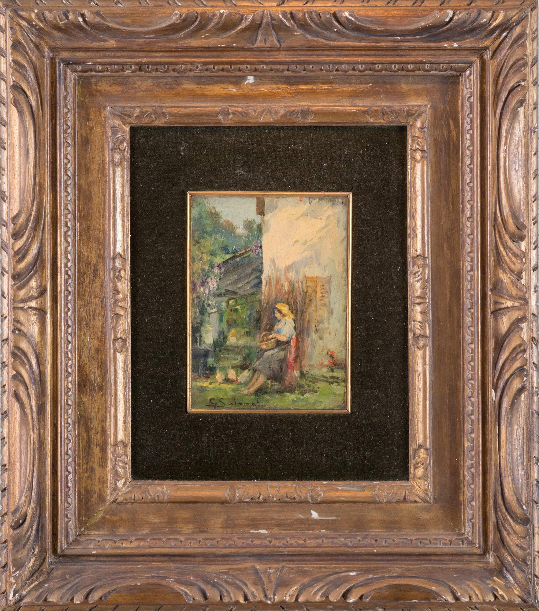 GIUSEPPE SOLENGHI (Milano 1869 - Cernobbio 1944) "Donna seduta". Olio su tavola. Cm 17x12,5. Opera firmata al centro G. Solenghi.
