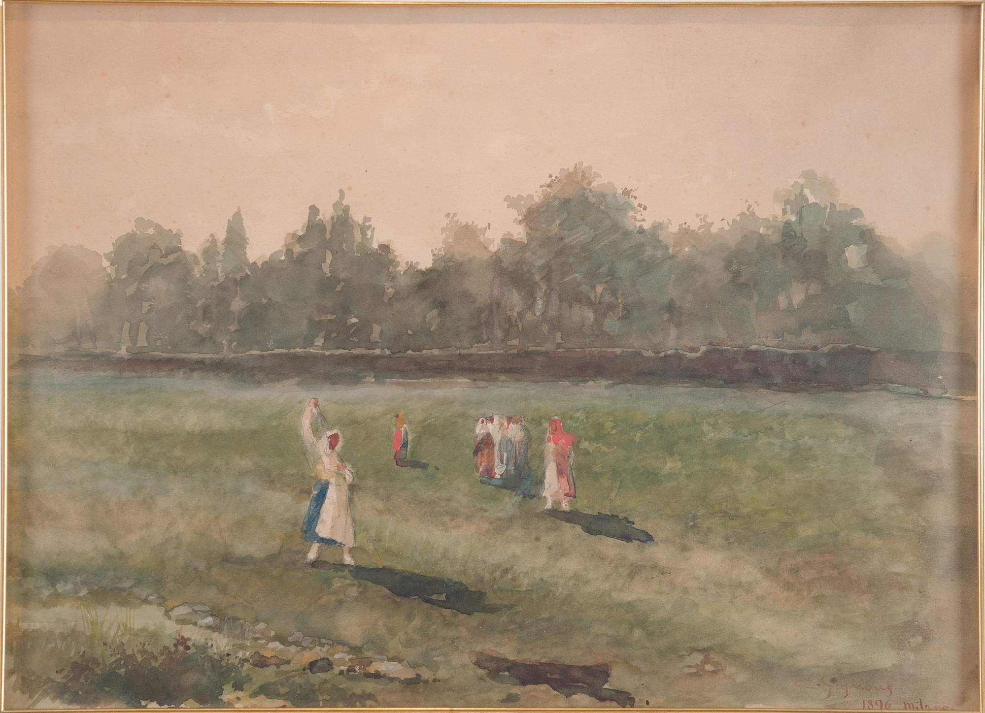 EUGENIO GIGNOUS (Milano 1850 - Stresa 1906) "Senza titolo", 1896. Acquerello su carta. Cm 34,5x47. Opera firmata e datata in basso a destra E Gignous Milano 1896.