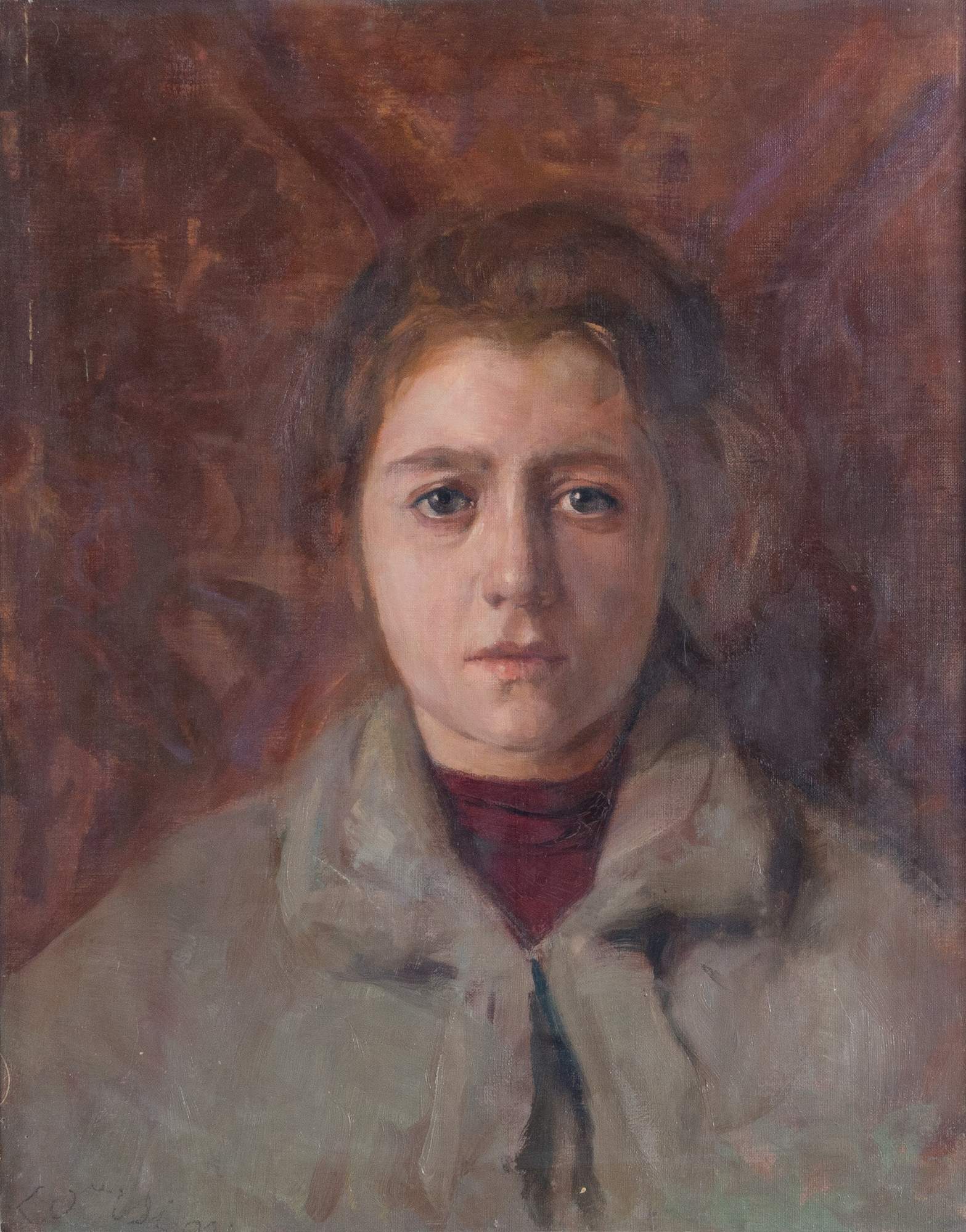 “Ritratto di Virginia”. Olio su tela applicata su cartone. Cm 41,2x36,2. Provenienza: eredi Carlo Corsi.