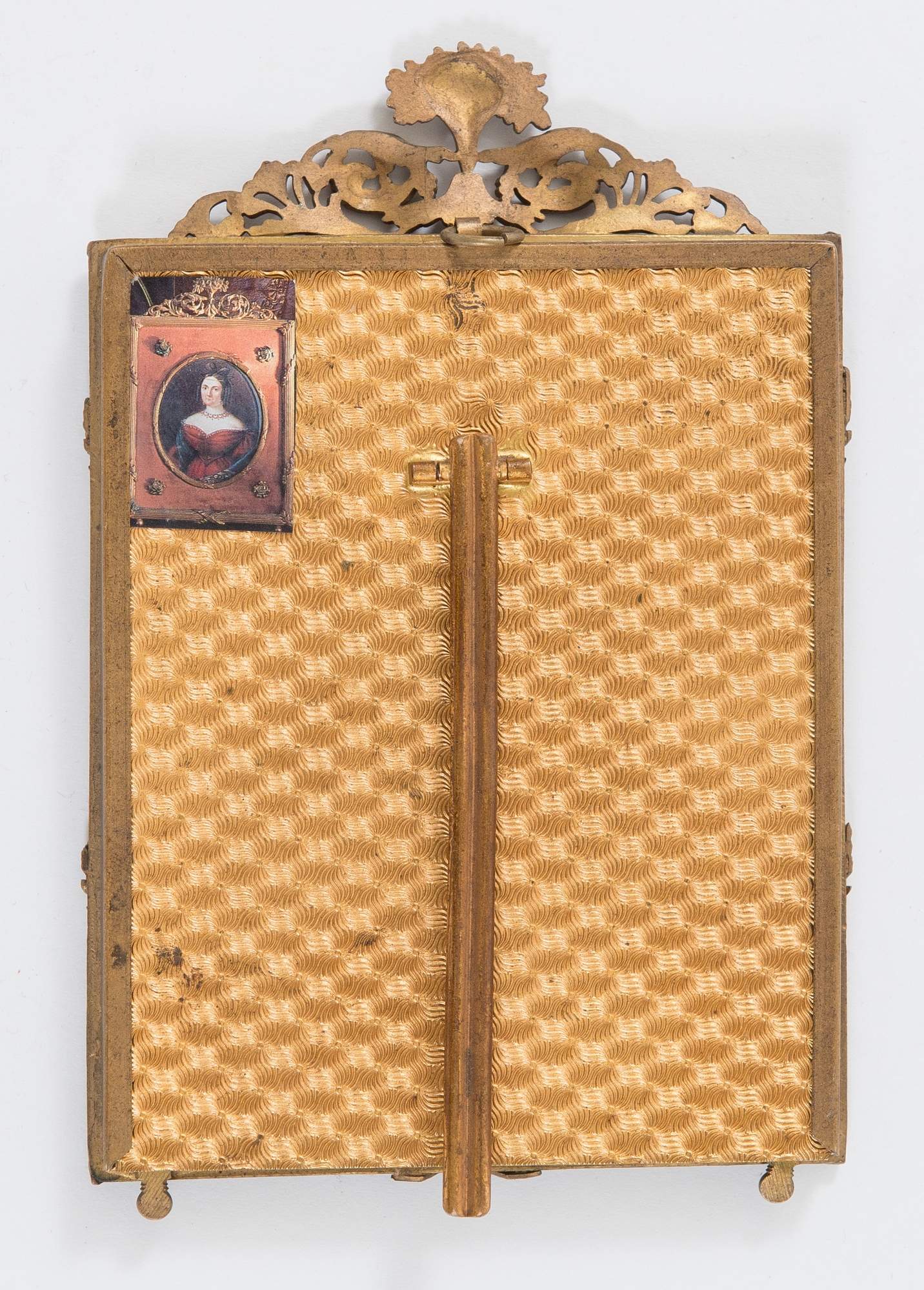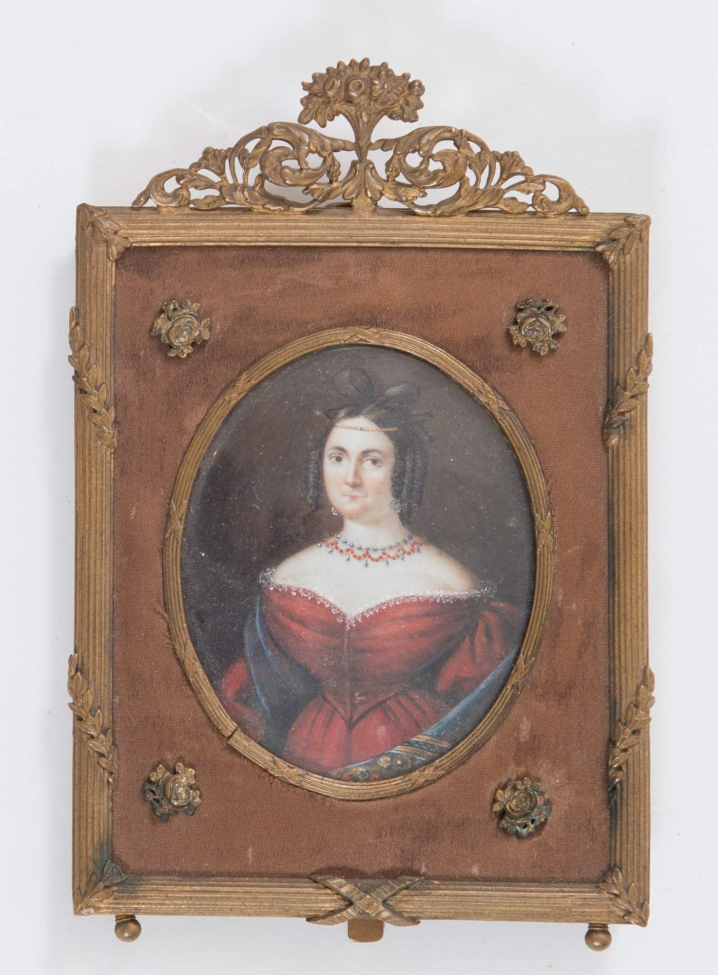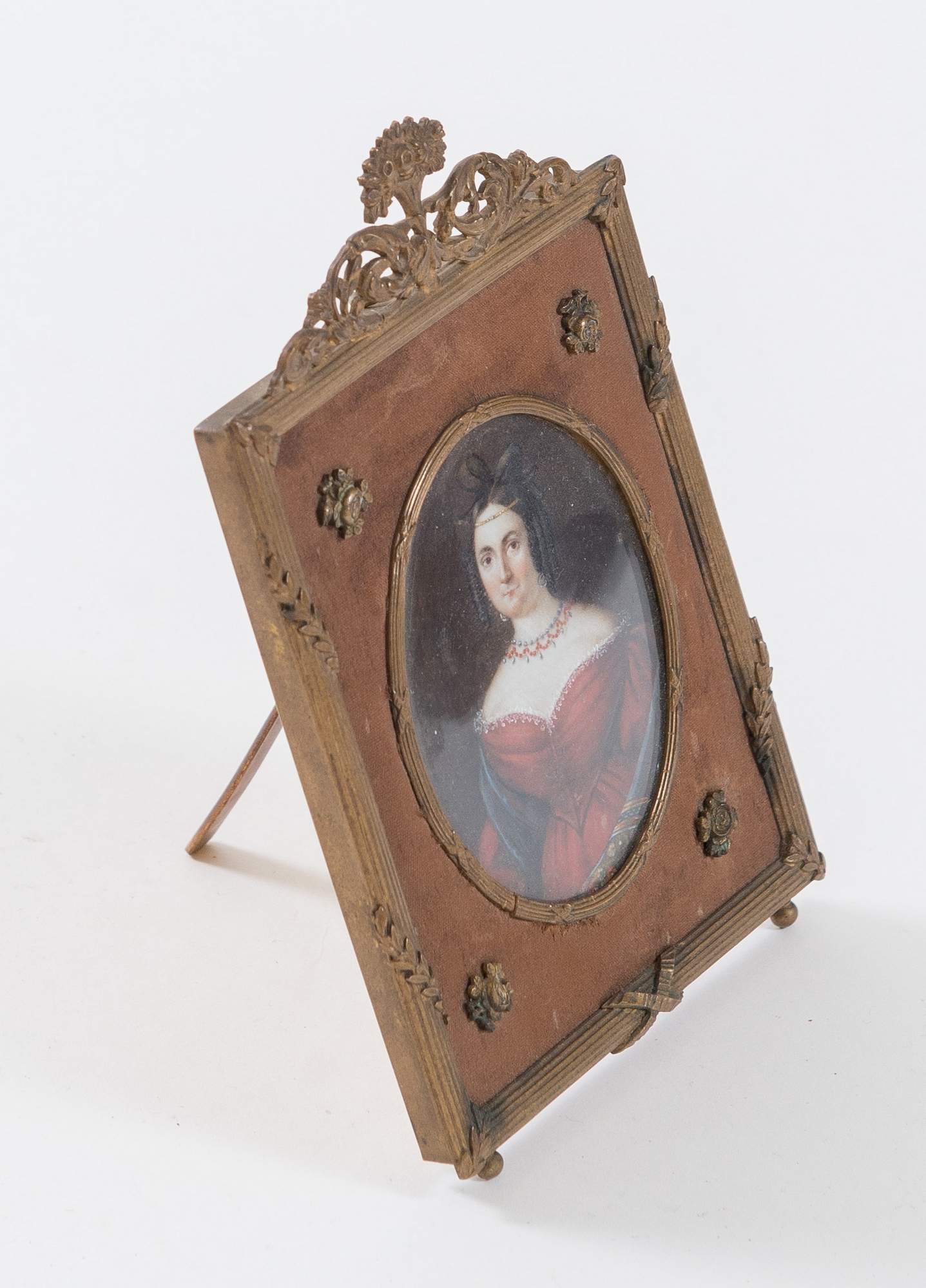 Miniatura del XIX secolo. Con cornicetta in bronzo dorato. Cm 14x9,5x8.