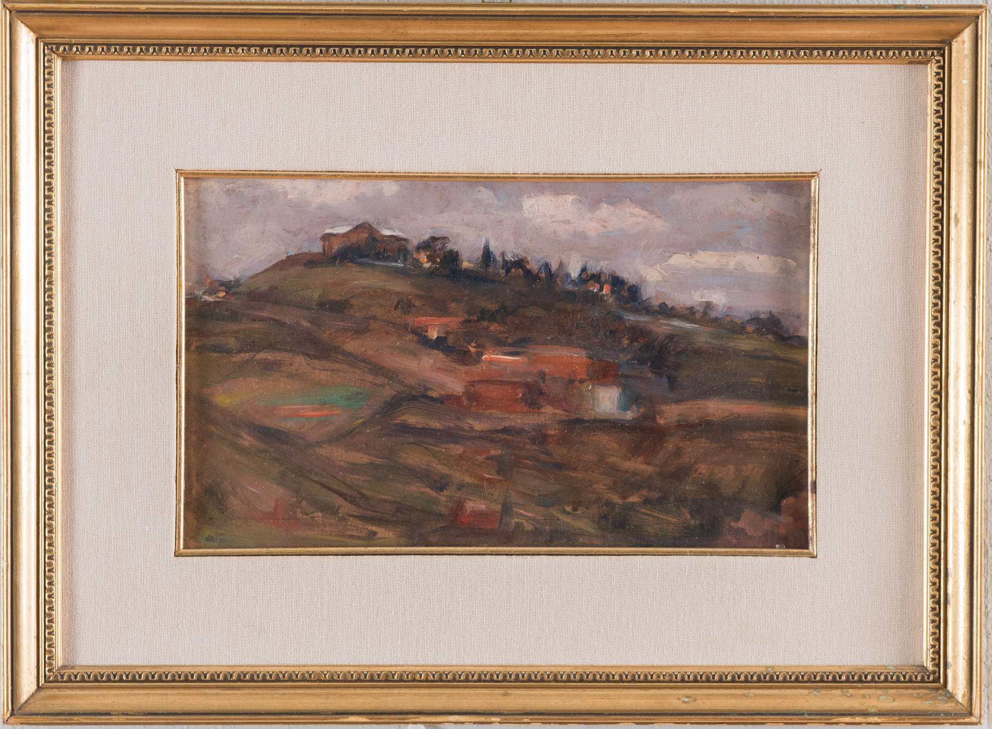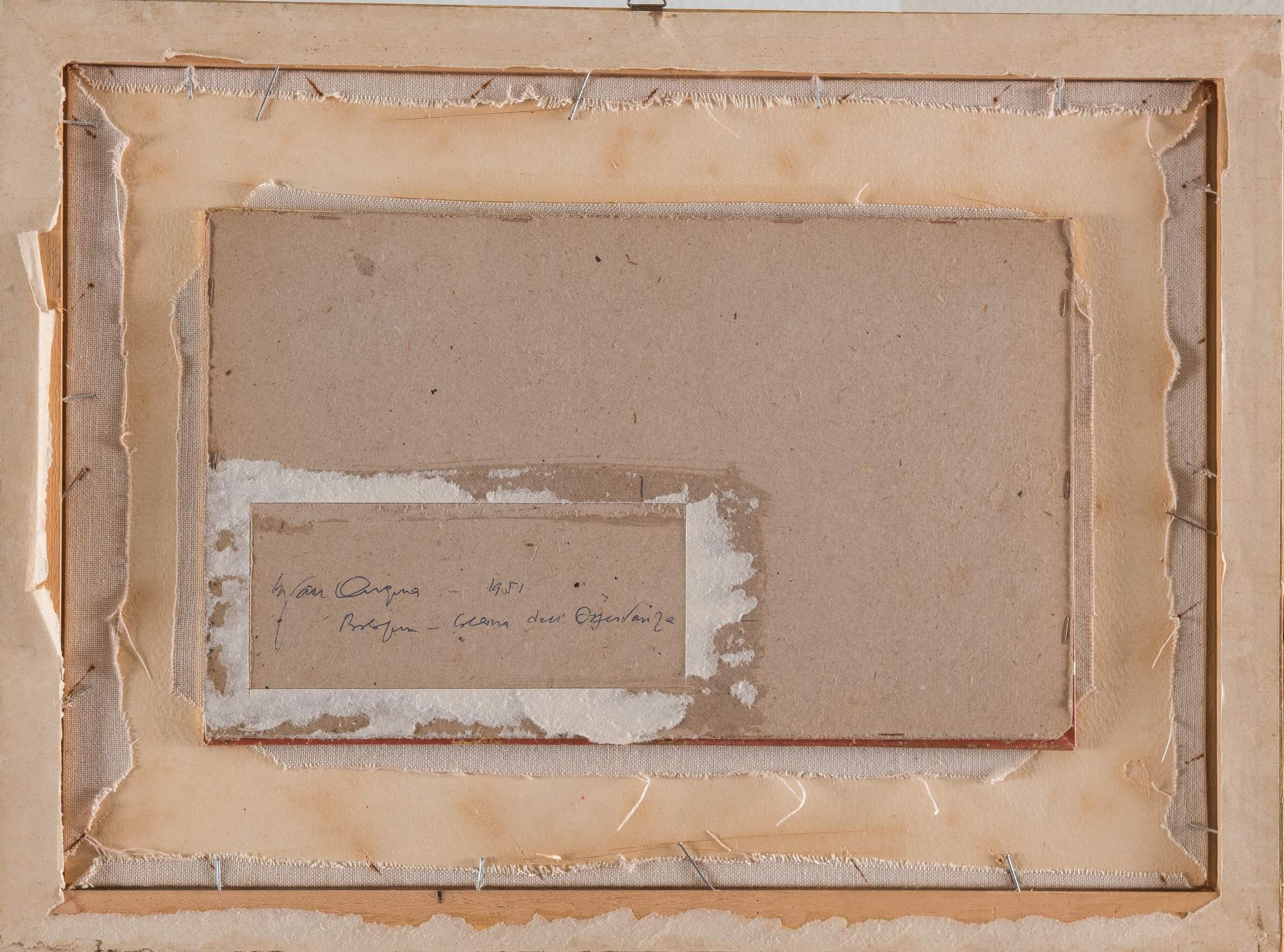 GAETANO DALL'ACQUA, XX secolo. "Collina dell'Osservanza", 1951. Olio su cartone. Cm 20x32,5. Opera firmata e datata in basso a sinistra G. Dall'Acqua 51. Al retro opera firmata Gaetano Dall'Acqua e datata 1951 e intitolata Bologna Collina dell'Osservanza.