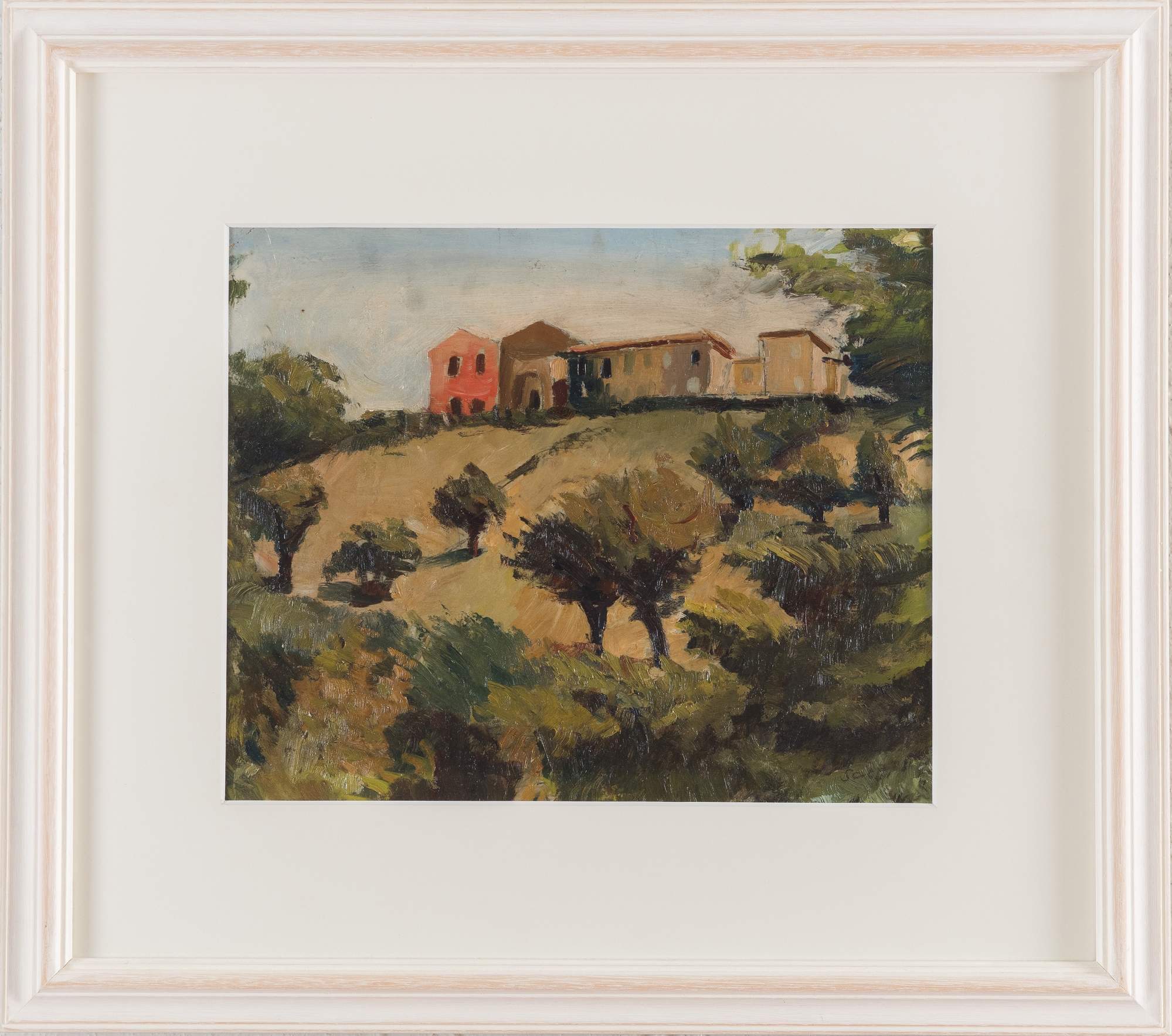 BRUNO SAETTI (Bologna 1902 – 1984) "Paesaggio", anni '40. Olio su cartone. Cm 26,5x32,5. Opera firmata in basso a destra Saetti. Opera rectoversa. Provenienza: eredi Saetti.